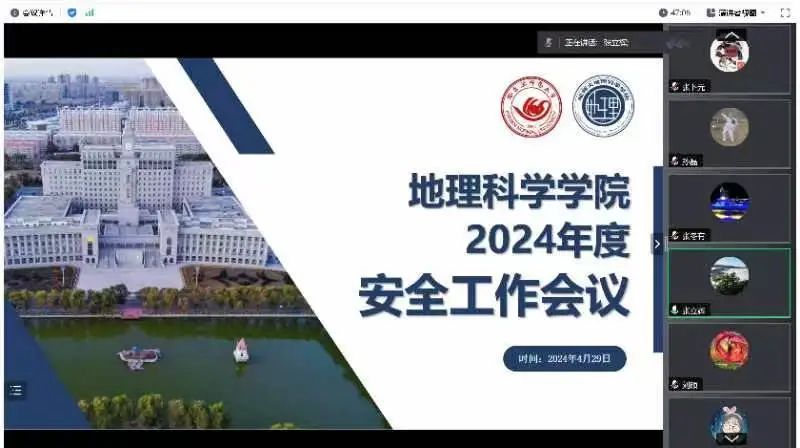 会议强调,在学校党委的领导下,地理科学学院在上一年度认真组织开展各类安全教育和隐患排查工作,取得较好的工作成效。本年度,学院将认真贯彻学校安全工作要求和部署,强化问题导向,筑牢安全底线,营造和谐安全的校园环境,为我院工作高质量发展提供坚强保障。