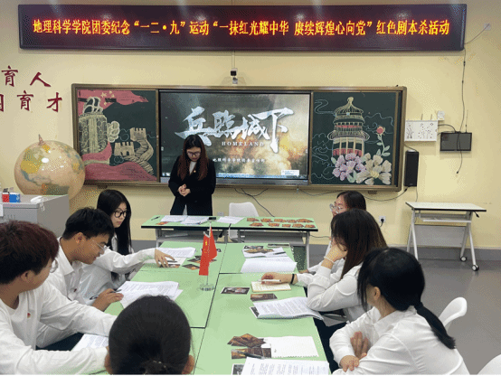 演绎红色历史,追寻先辈初心。为学习贯彻习近平新时代中国特色社会主义思想和习近平文化思想,纪念“一二·九”爱国运动,教育引导广大青年传承红色基因,赓续红色血脉,厚植爱国情怀,弘扬中华优秀传统文化,进一步加强团支部书记能力素质培养,增强团队凝聚力,地理科学学院团委于2023年12月7日面向团支部书记在理工三号楼举办“一抹红光耀华夏,赓续辉煌心向党”红色剧本秀主题活动,通过“沉浸式”交互体验,与历史人物跨时空对话,引导学生铭记历史,探寻红色足迹,聆听红色故事。