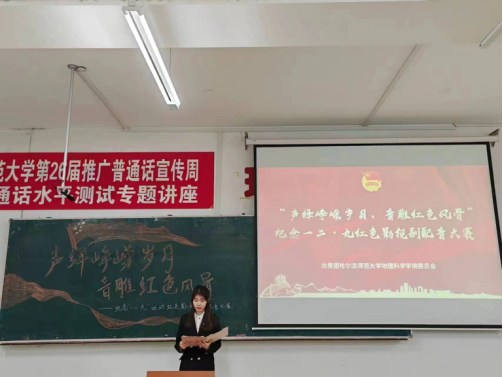银幕上的红色经典永不褪色,记忆里的英雄形象依旧辉煌。为纪念“一二·九”运动,引导广大团员青年心系历史,敬畏英雄,以青春的声音延续红色薪火,以时代的新声再谱经典华章。地理科学学院团委特于12月7日举办“声绎峥嵘岁月,音雕红色风骨”红色影视剧配音大赛,以红色影片为主要载体,借助声音的表达与渲染,回归真实的历史场景,感悟厚重的使命担当,坚定奋斗的时代强音,以此不断增强青年的责任感与使命感,由团委主要学生干部担任评委。