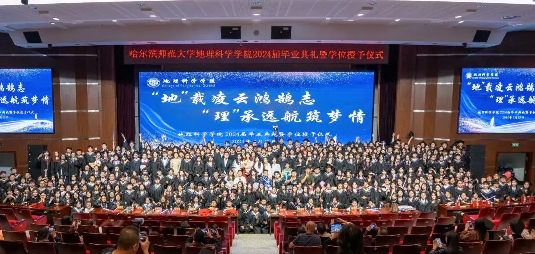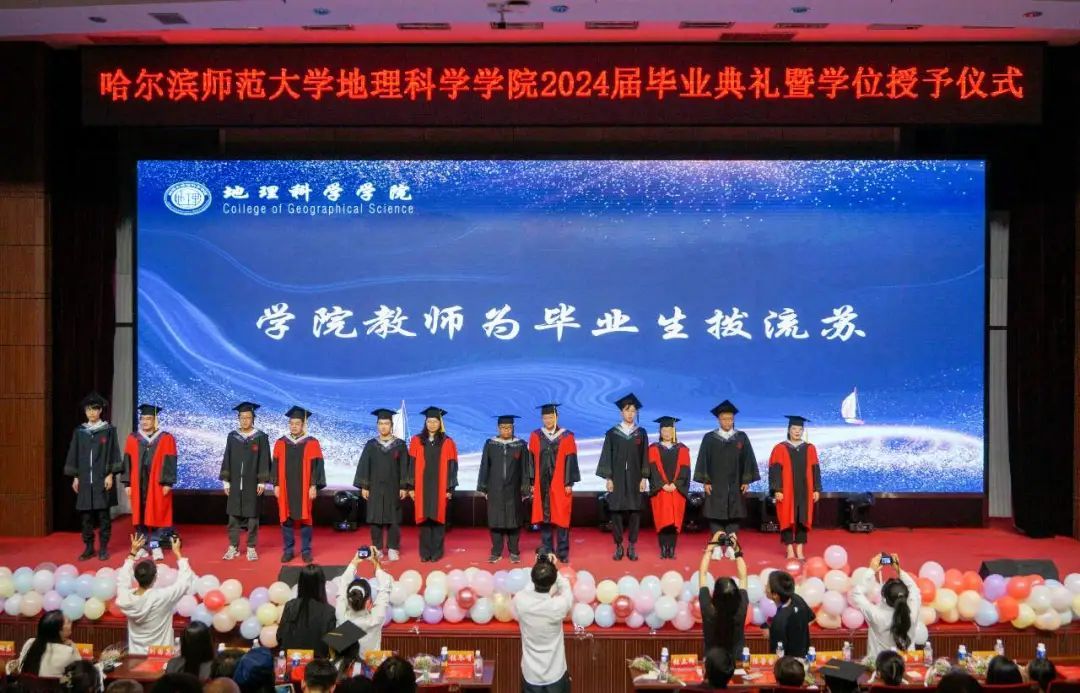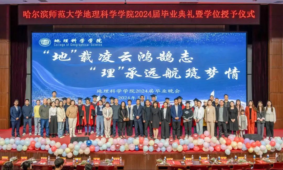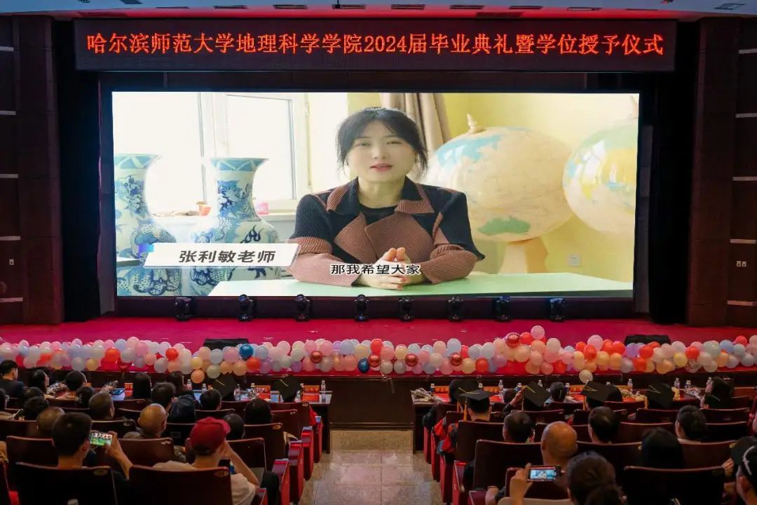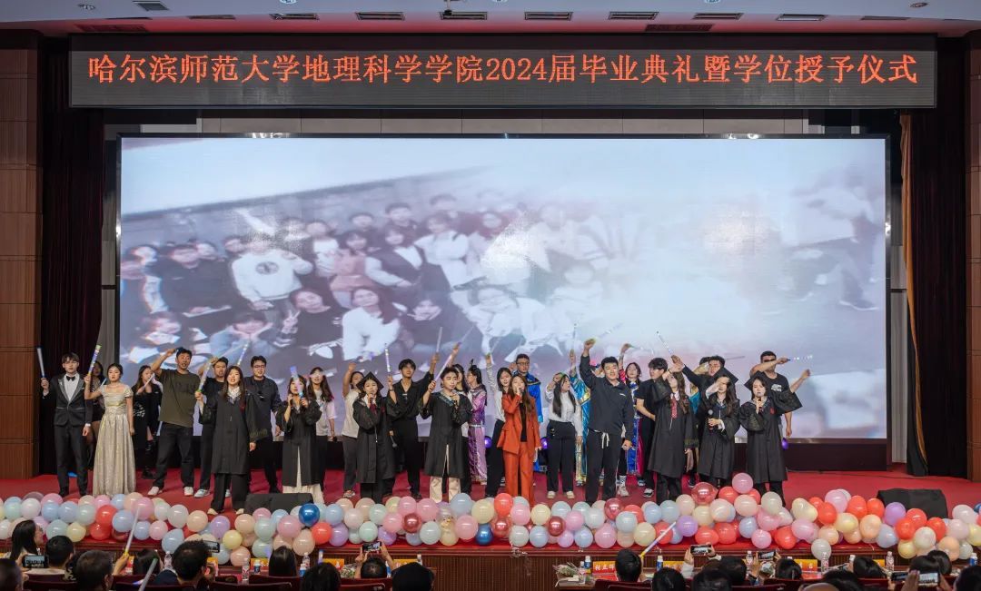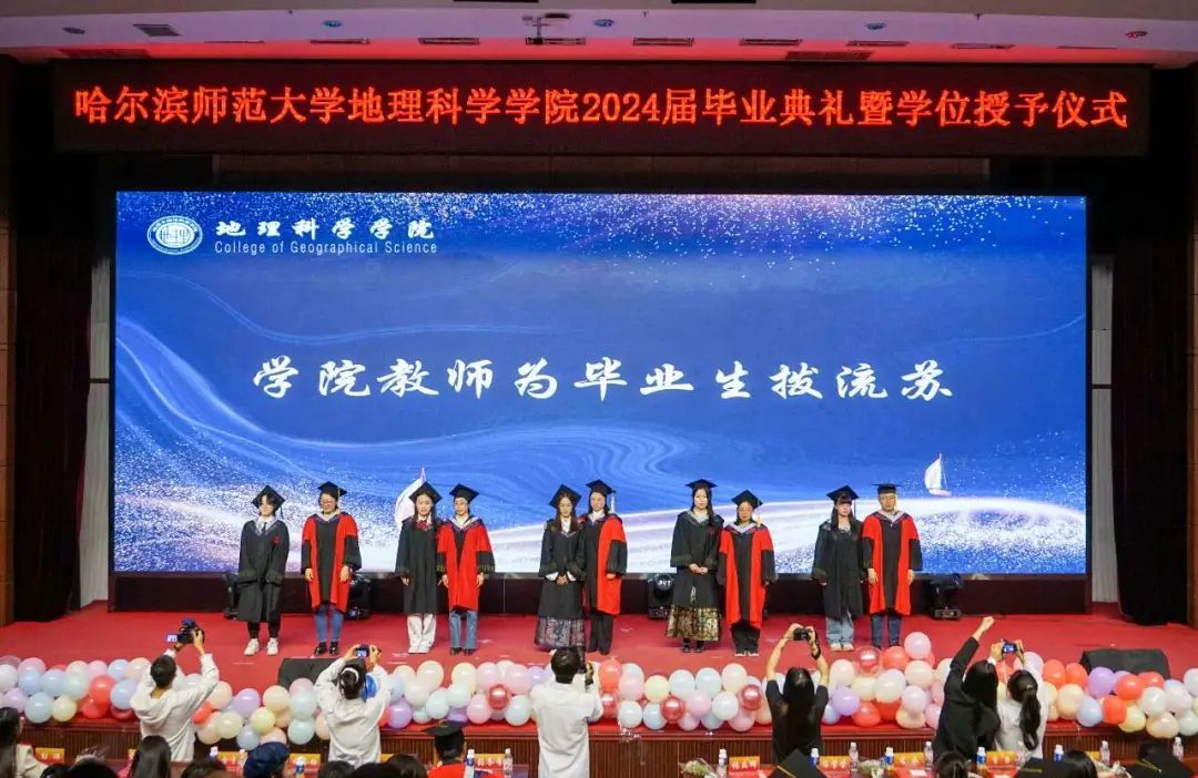 骊歌轻唱,春风和煦,在丁香馥郁的美好时节,毕业季如约而至。为深入贯彻落实《哈尔滨师范大学大学生思想政治教育“112349”工作模式实施方案》,增强毕业生的爱校情怀和感恩意识,鼓舞毕业生坚定理想信念、践行青春梦想,按照开元(中国)毕业生离校教育“十个一”工作要求,5月13日,地理科学学院在科学会堂举办2024届毕业典礼暨学位授予仪式。学院党委书记张立辉、院长张冬有、党委副书记陈莹莹、副院长周嘉、教科办主任郝冬梅、学工办主任宋歌、各系教师代表和全体辅导员出席典礼,学院2024届全体毕业生及家长代表参加典礼,毕业典礼由学院团委副书记、2020级辅导员郭昊昕主持。