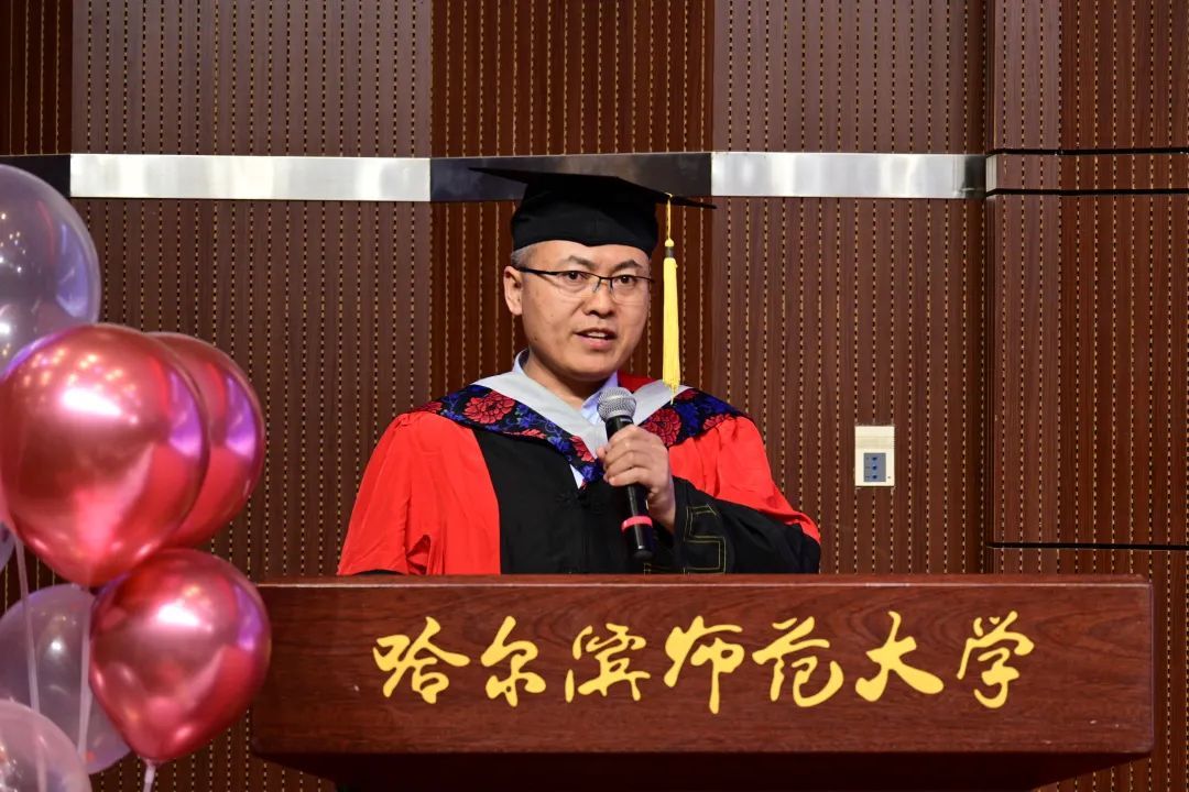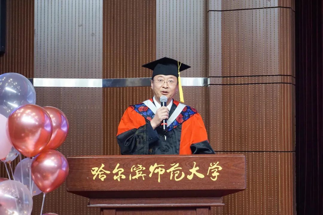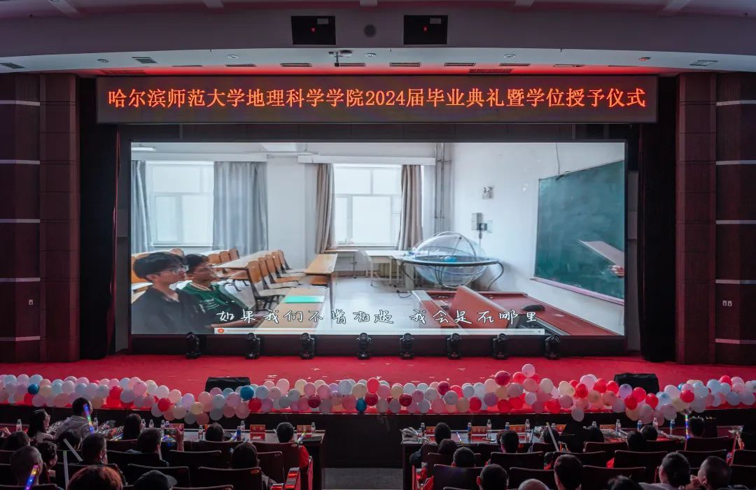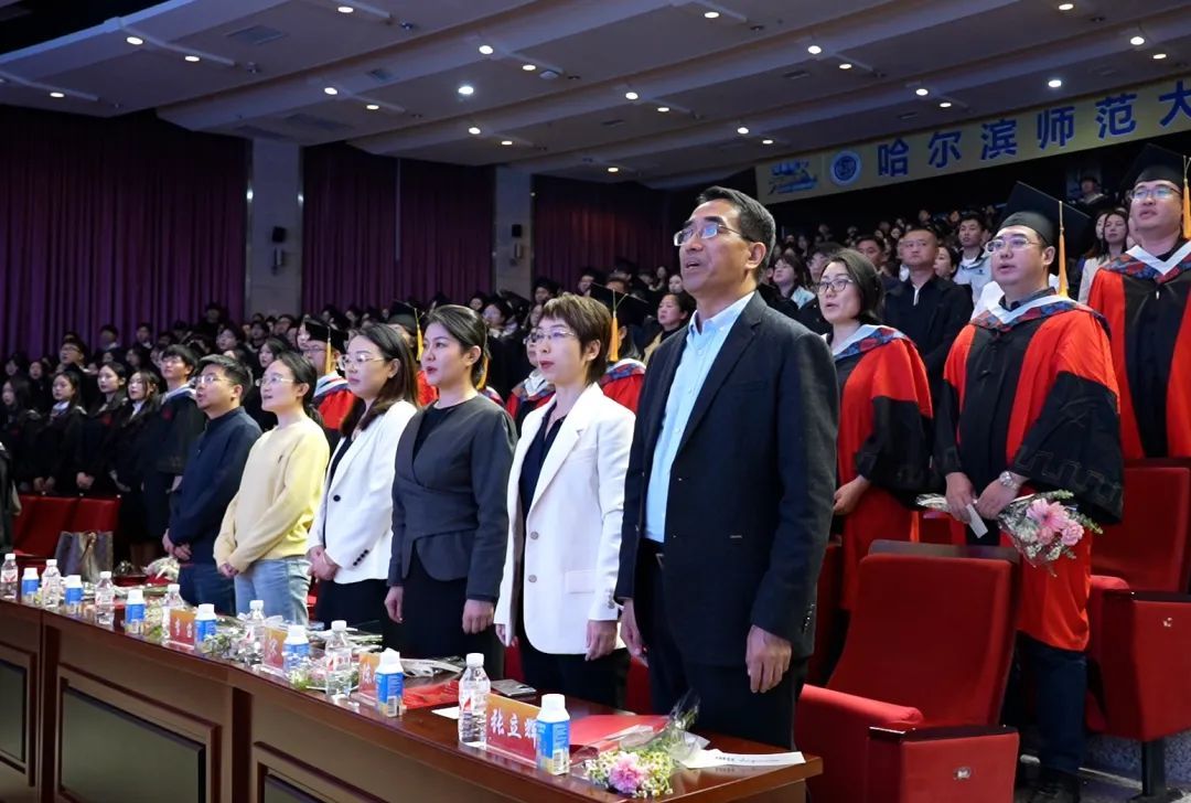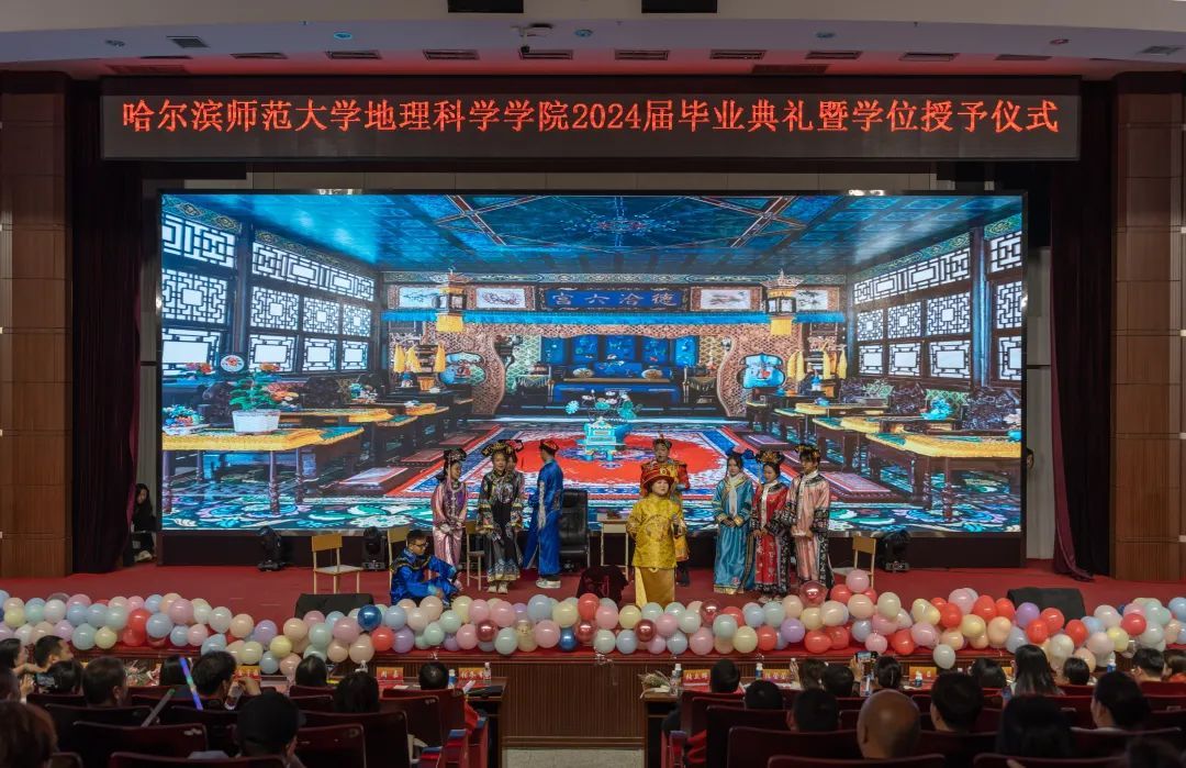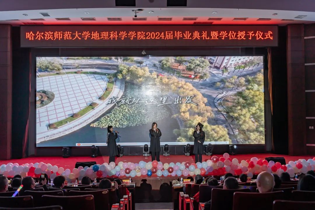 骊歌轻唱,春风和煦,在丁香馥郁的美好时节,毕业季如约而至。为深入贯彻落实《哈尔滨师范大学大学生思想政治教育“112349”工作模式实施方案》,增强毕业生的爱校情怀和感恩意识,鼓舞毕业生坚定理想信念、践行青春梦想,按照开元(中国)毕业生离校教育“十个一”工作要求,5月13日,地理科学学院在科学会堂举办2024届毕业典礼暨学位授予仪式。学院党委书记张立辉、院长张冬有、党委副书记陈莹莹、副院长周嘉、教科办主任郝冬梅、学工办主任宋歌、各系教师代表和全体辅导员出席典礼,学院2024届全体毕业生及家长代表参加典礼,毕业典礼由学院团委副书记、2020级辅导员郭昊昕主持。