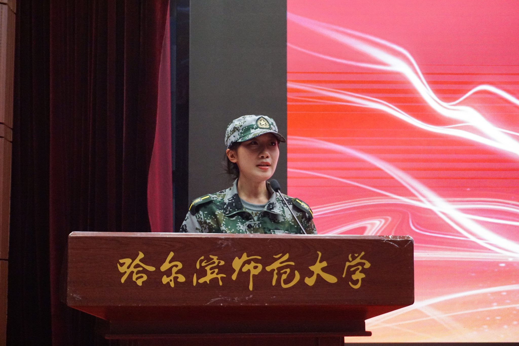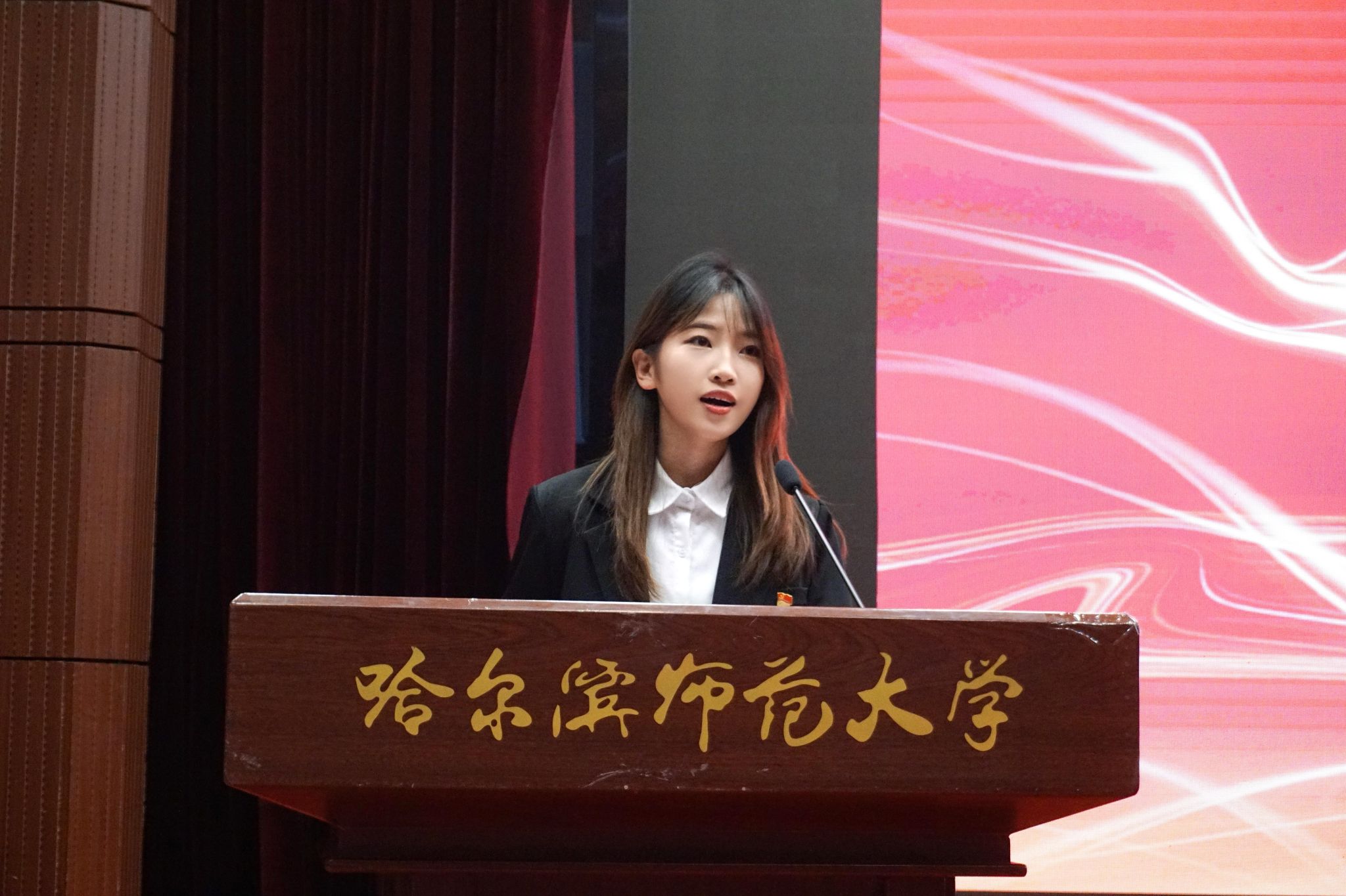 典礼第六项,奏唱《哈尔滨师范大学校歌》。同学们昂首挺胸,带着自信的微笑,在深情唱校歌的过程中进一步坚定了对母校的无限热爱和对未来大学生涯的憧憬。
