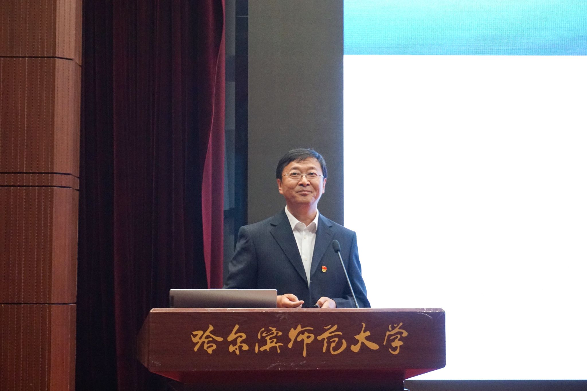 典礼第五项,地理科学学院院长、博士生导师张冬有教授致辞。张院长对全体新生的到来表示热烈的欢迎,结合学院发展时间节点,深入介绍了学院概况和历史沿革,阐述了学院由小变大、由大变强的历程,以“厚积薄发”、“学科厚重”等关键词向学生介绍了学院悠久的办学历史和深厚的学科底蕴,学院拥有的强大的师资队伍、突出的学科优势、优质的教学资源、先进的育人理念、完善的人才培养制度。张院长表示,学院坚持“多方协同,科学育人”,注重人才培养,师生协力取得了一系列丰硕的科研成果,在服务社会、振兴龙江等方面做出了突出的贡献。最后,张院长希望同学们尽快融入大学生活、适应角色转变,敢为人先、磨砺意志,脚踏实地学知识,自信勇敢放飞梦想,抓住机遇,迎接挑战,努力成为品德高尚、专业过硬的新时代人才,在学习实践中实现人生价值,升华人生境界。让我们一起开启精彩的大学生活。