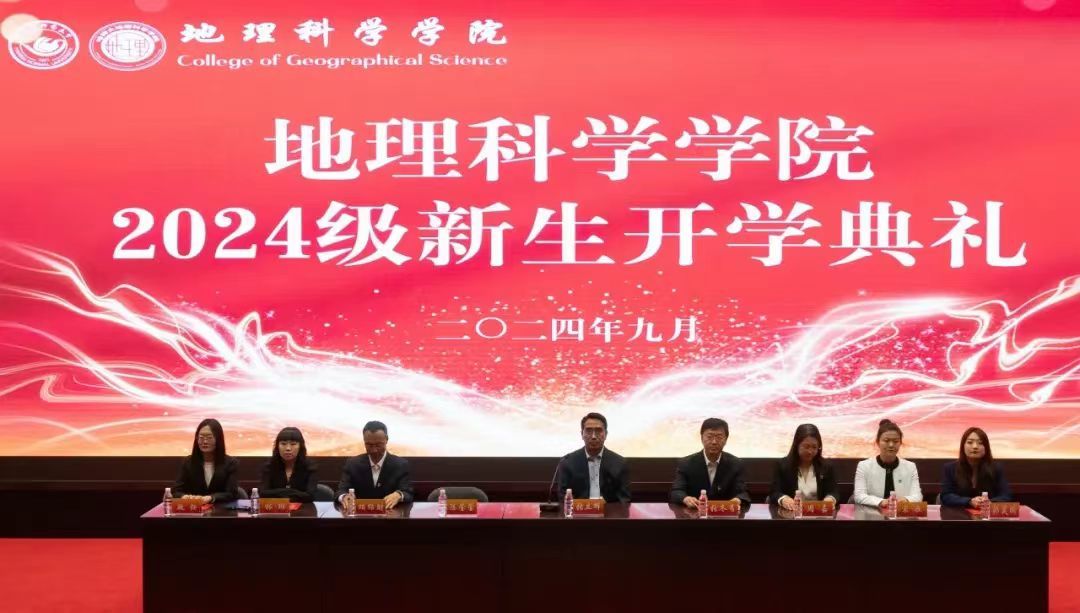秋风送爽启新程,扬帆远航谱华章。为深入贯彻落实《哈尔滨师范大学大学生思想政治教育“112349”工作模式实施方案》,按照《哈尔滨师范大学2024级新生入学教育方案》相关要求,9月14日下午,地理科学学院2024级新生开学典礼在科学会堂隆重举行。地理科学学院党委书记张立辉、院长张冬有、院党委副书记陈莹莹、副院长周嘉、副院长张玉红、学工办主任宋歌、办公室主任胡绍财、地理科学系副主任林琳、院团委副书记郭昊昕、教科办教师马玉妍、全体辅导员出席典礼,学院2024级全体新生参加典礼,典礼由陈莹莹主持。
