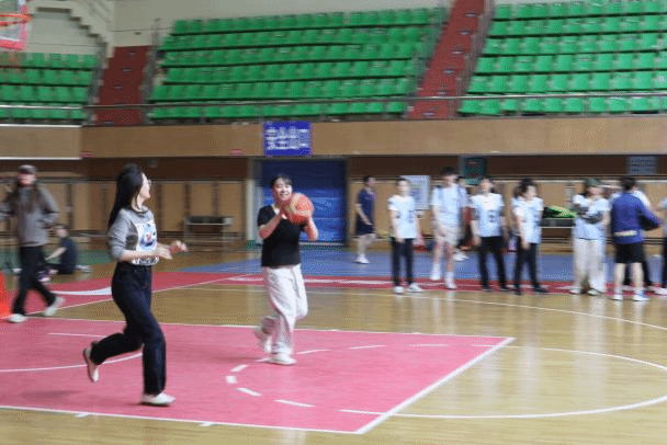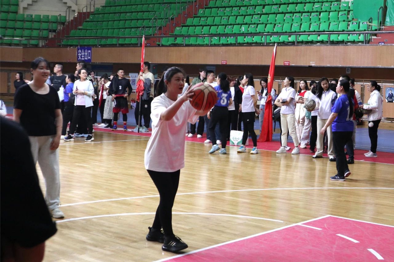 来到投篮环节,老师们屏气凝神,目光紧紧锁定篮筐,蓄力、起跳、出手,一系列动作连贯而流畅。篮球在空中划出一道道优美的弧线,精准命中篮筐,引得全场欢呼。赛场上,老师们相互鼓励、相互支持,充分彰显了地理科学学院团结友爱的集体氛围。