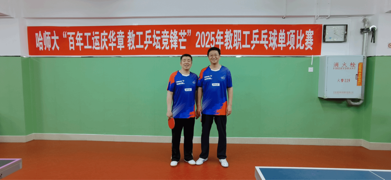 在哈尔滨师范大学“百年工运庆华章,教工乒坛竞锋芒”2025教职工乒乓球单项比赛中,地理科学学院院长张冬有、教科办教师马玉妍组合报名参加男子双打比赛,荣获季军。