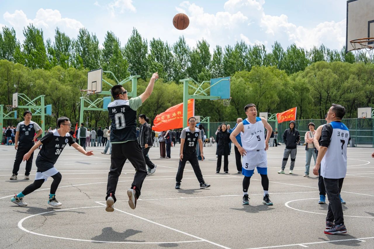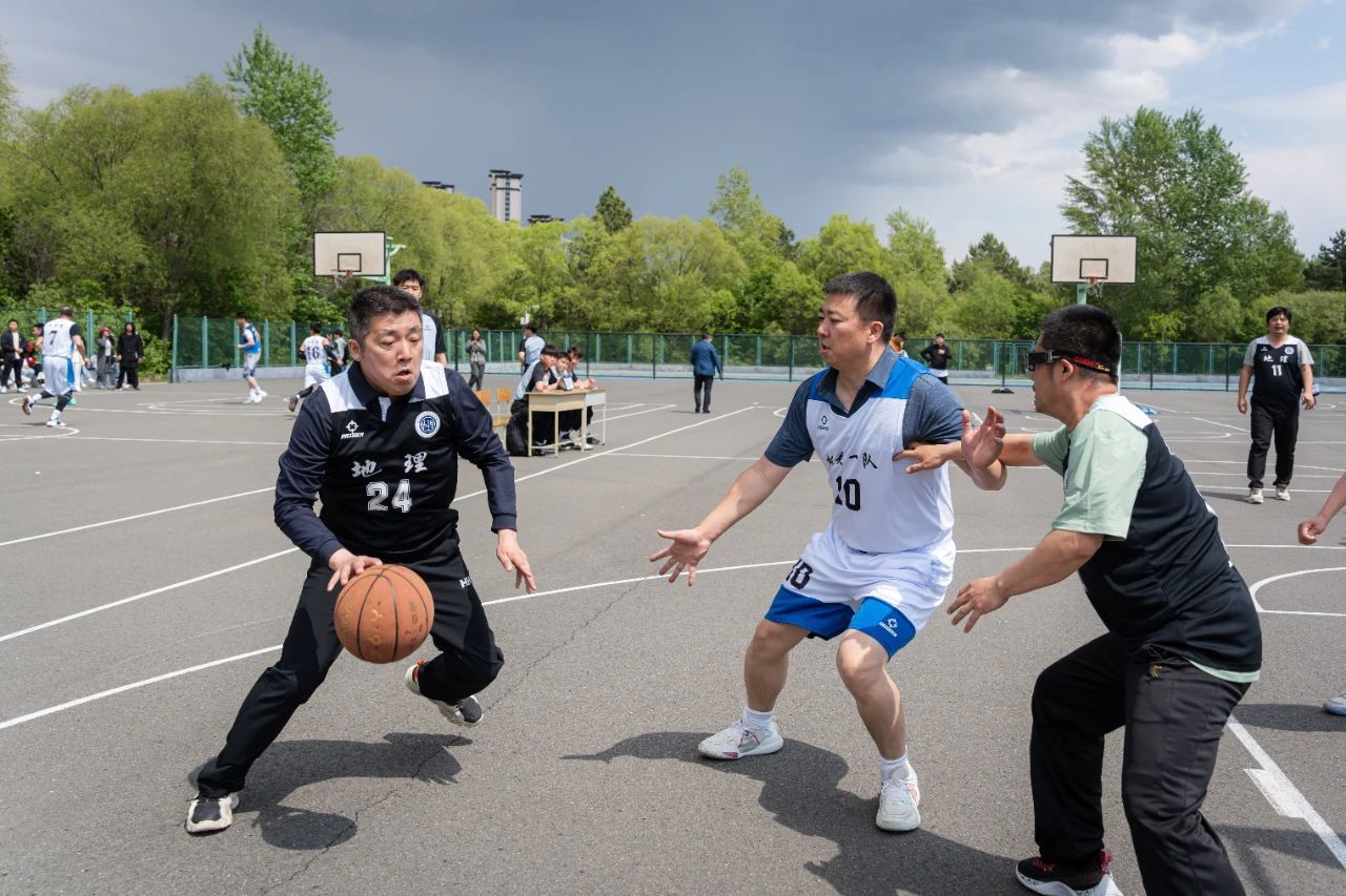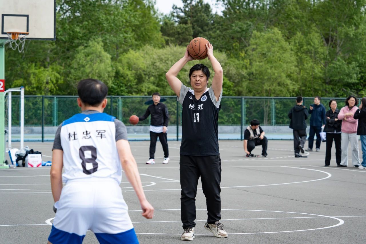 地理科学学院的男教职工篮球队秉持着“友谊第一、比赛第二”的原则,以“团结协作、强健体魄”为宗旨,在球场上默契配合。他们在运动中不断适应比赛节奏,调整状态,逐渐找到手感,展开猛烈的进攻和严密的防守。队员们冲劲十足,稳中求进,汗水湿透了衣衫,但他们的斗志却愈发昂扬。