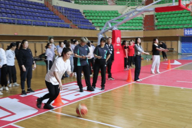 本次女篮趣味赛打破传统竞技模式,将趣味性与竞技性巧妙融合,设置了运球过杆和投篮两大核心环节。