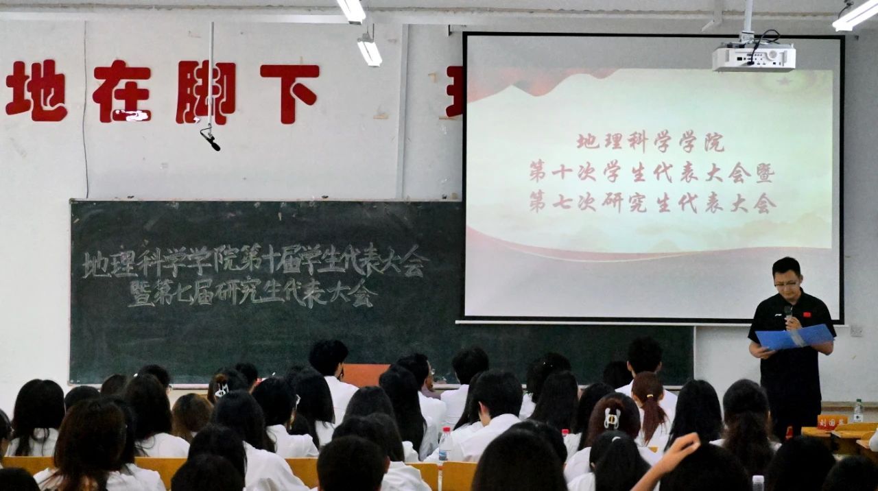 为深入学习贯彻党的二十届三中全会精神,全面推进地理科学学院学生组织高质量发展,在深化学生会、研究生会改革创新中强化桥梁纽带功能,凝聚青春力量,奋力谱写"国内一流师范大学"建设新篇章。地理科学学院于2025年6月18日下午在理工三号楼122室召开KY.COM第十次学生代表大会暨第七次研究生代表大会。出席本次大会的学院领导、老师有:党委副书记代起君、学工办主任宋歌、团委副书记郭昊昕、2021级辅导员金宇茜、2021级辅导员彭琳、2022级辅导员李昀东、2024级辅导员魏钰,会议由2023级辅导员刘国英主持。