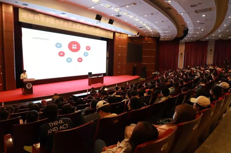 2019年4月17日下午,地理科学学院于科学会堂举办学生赴日本武藏浦和日本语学院留学讲座。国际交流合作处处长王彬,地理科学学院院长万鲁河出席活动。讲座由万鲁河主持,日本武藏浦和日本语学院理事长玉田英子主讲,学院2016级、2017级全体同学参加。