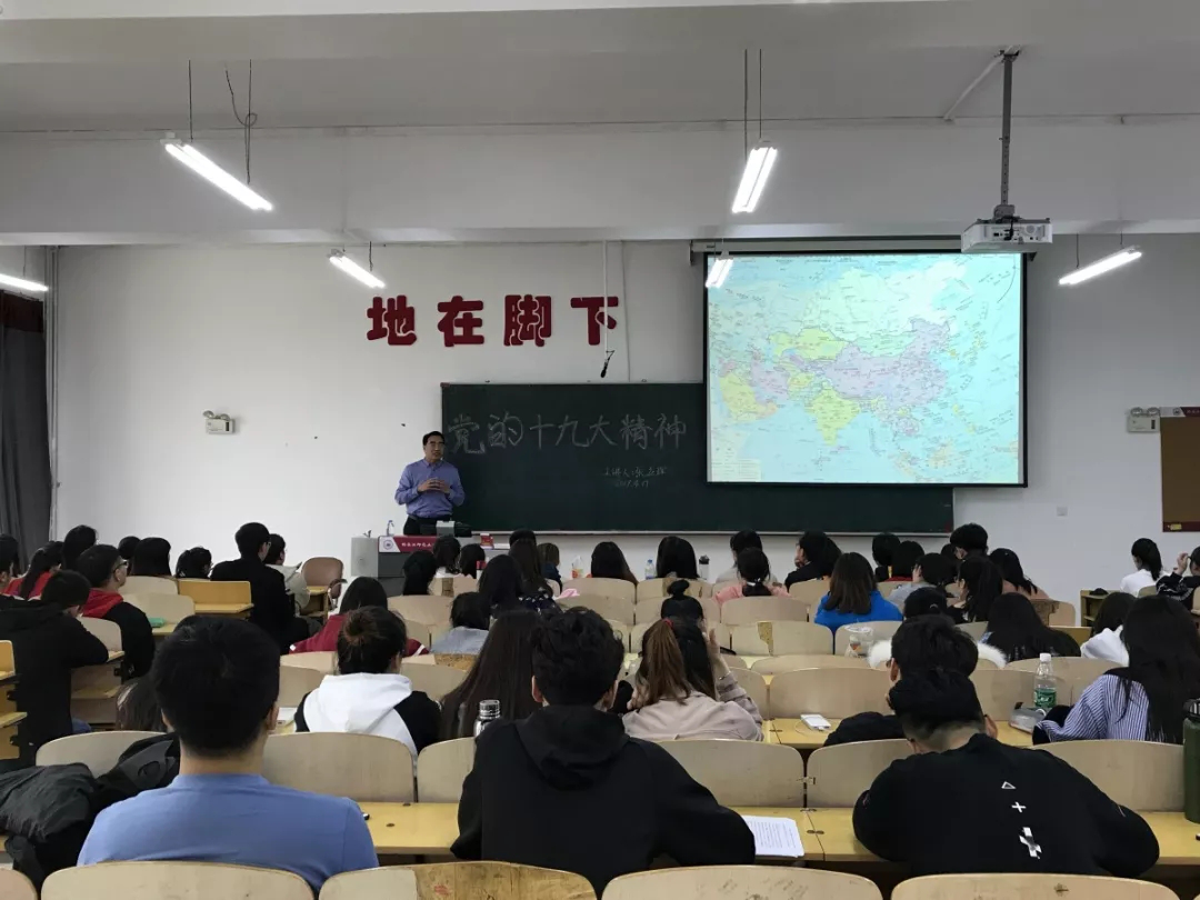 张立辉老师将生活事例与理论相结合,使同学们更加清晰深刻的感受到“党的十九大精神”于平凡中的伟大,于深奥中的平易近人。张老师先后以美国、德国、俄罗斯、委内瑞拉等国家为例,由大及小,由浅入深。客观真实讲述其各国政治、经济等发展特点,并以其国情为切入点,深入剖析和探讨各国发展路径与中国相异同之处。且以各国人民的生活特点及领导人的决策方式为要点,讲历史,品现实,细致分析,精准点评。张老师用简单易懂又不失雅性的言语表达着及其精奥的主题,让同学们在有限的时间里,收获颇多。