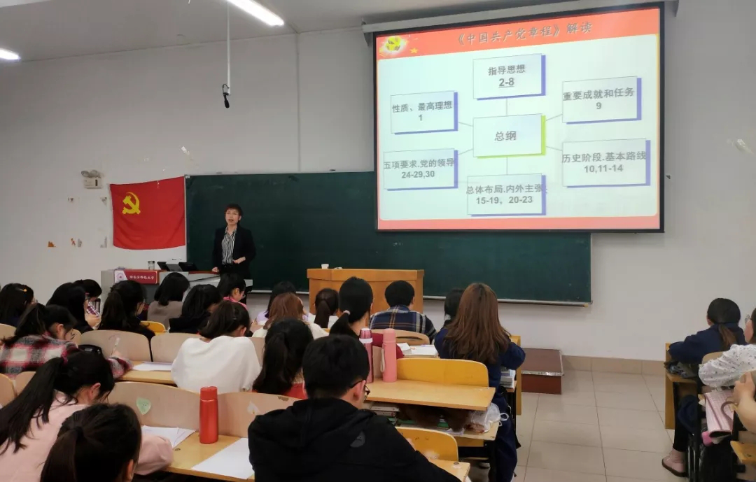 4月18日,党课走向了尾声,团委书记陈莹莹老师最后向大家深入剖析《中国共产党章程》。在提出“作为一名优秀的党员,首先应该具备的良好的道德品质与自我修养”理念的同时,她结合自身的生活实例和人生感悟,用自己的经历去告诉同学们,要在生活中无私奉献,做到“舍小我,为大家”。陈老师认为,《中国共产党章程》作为我党的立党之本、根本大法,应该是每个先进分子都应该去学习,去遵守的准则,要求同学们严格要求自己,不断提升思想理论水平,才能更好地为人民服务。