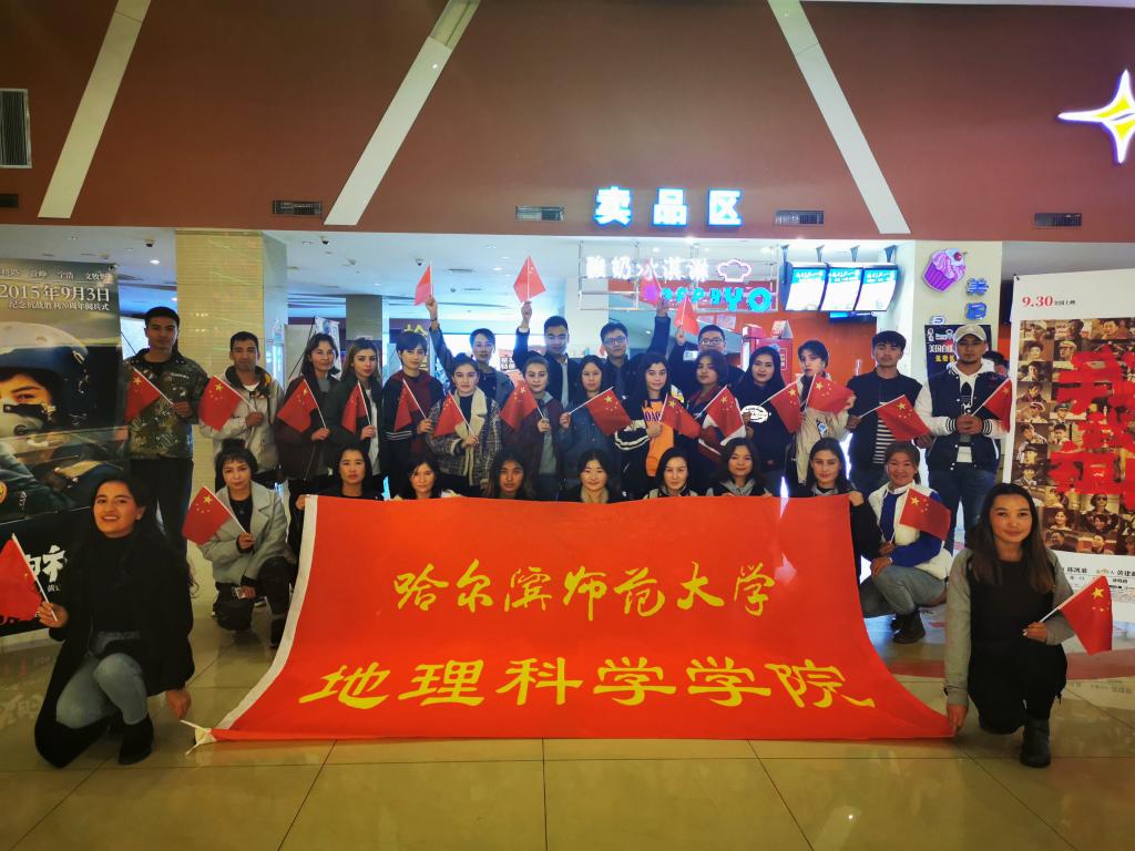 为深入贯彻落实习近平总书记在全国民族团结进步表彰大会上的讲话精神,推进“三进两联一交友”帮扶工作进行,结合“不忘初心、牢记使命”主题教育工作落实到实处,2019年10月11日,地理科学学院党委书记蒙国军及全体辅导员带领我院全体新疆同学来到杉杉电影院观看电影《我和我的祖国》,此次观影费用来自全院教师党员自愿捐赠。