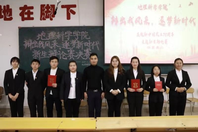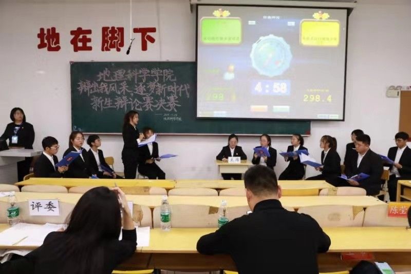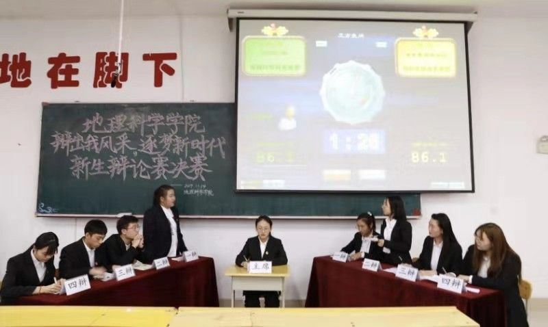 为加强我院学风建设,督促学生关注实事,丰富学生课余生活。2019年11月14日,由地理科学学院团委主办、纵横语言社协办的“辩出我风采,逐梦新时代”辩论赛决赛于理工三220室成功举办。出席本次决赛的嘉宾有地理科学学院团委书记陈莹莹、地理科学学院2019级辅导员刘轲、地理科学学院2019级辅导员王帝以及各学生组织负责人;2016级人文地理与城乡规划专业于博文、2017级地理科学专业董倩、2017级地理科学专业于伊淼,担任本次比赛评委。