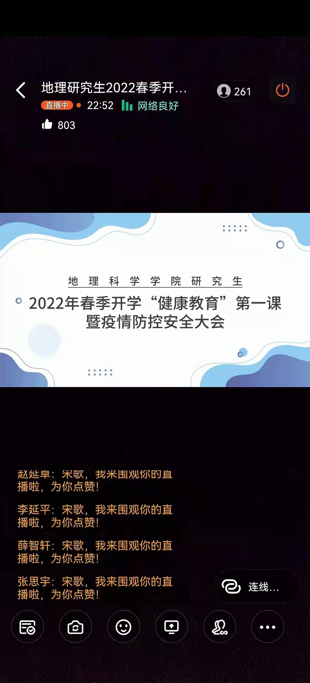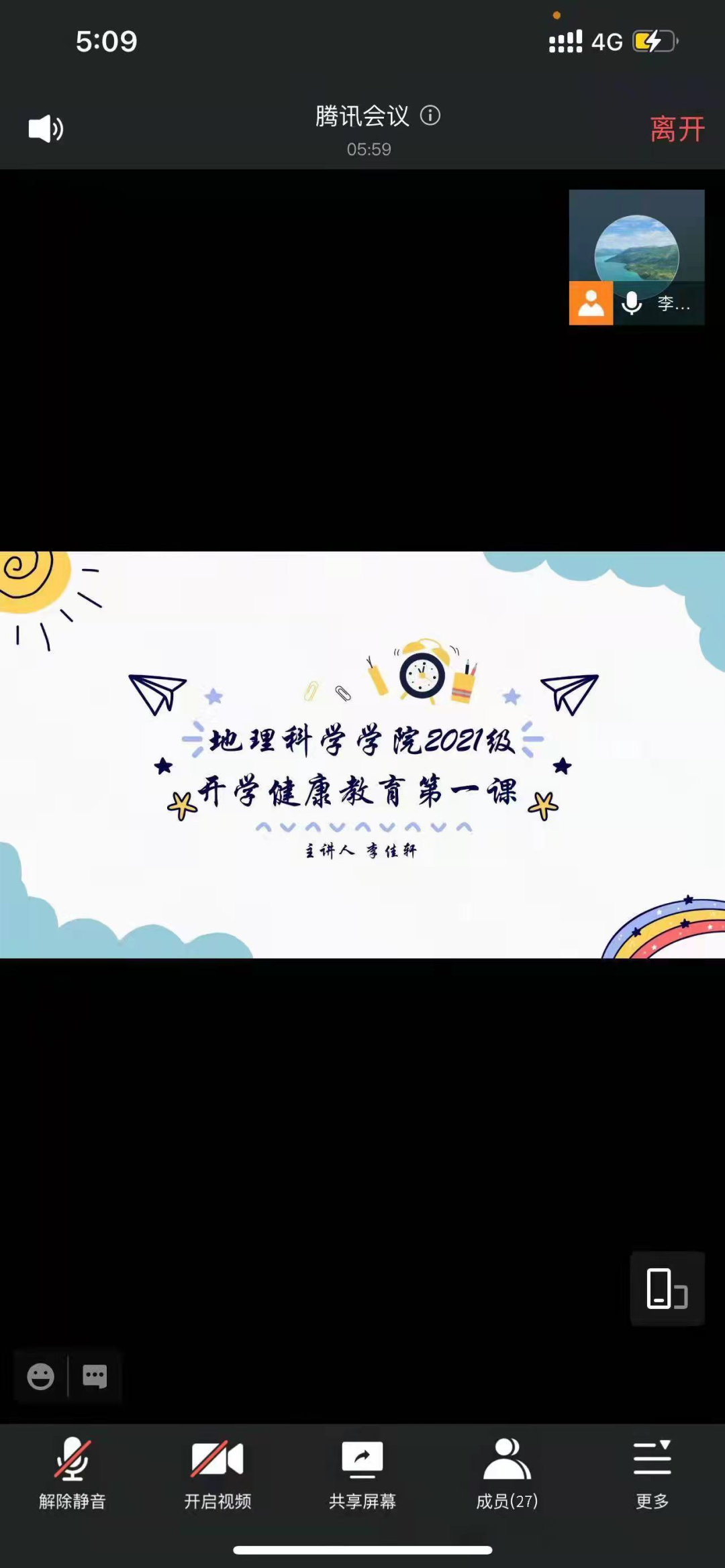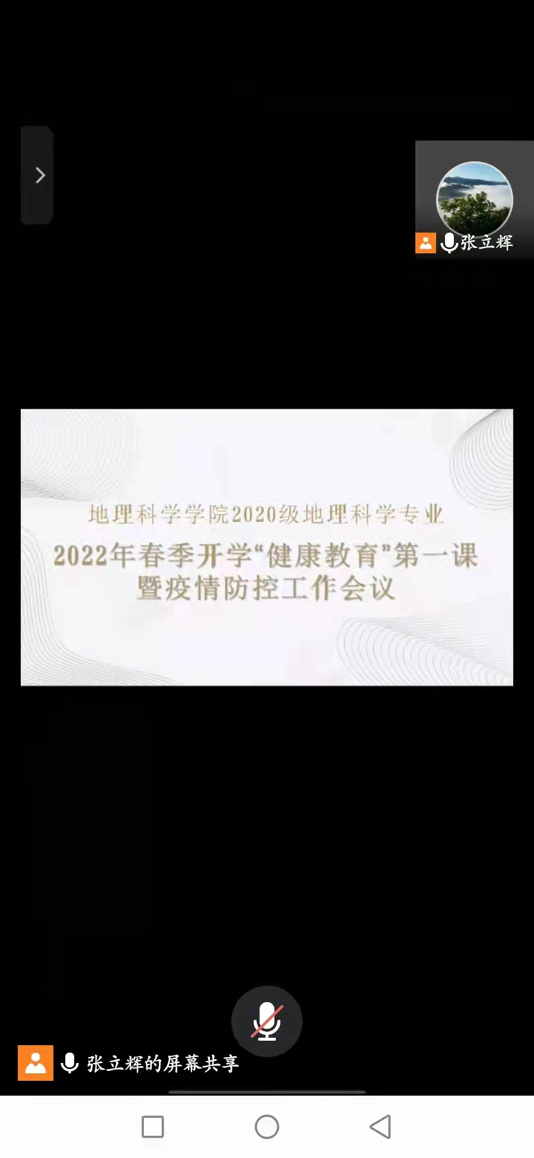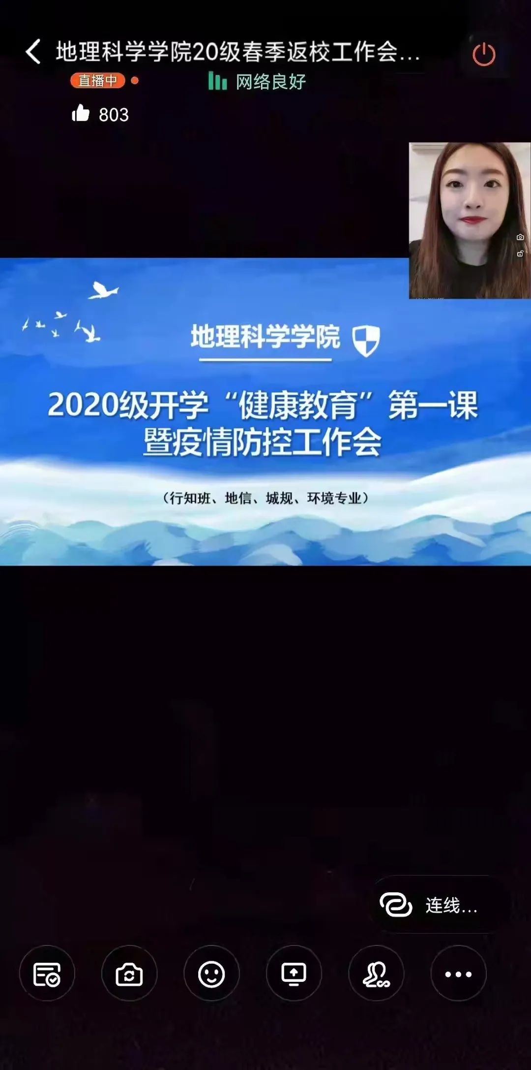 为深入贯彻落实校园疫情防控工作相关要求,进一步筑牢校园安全防线,强化学生安全防范意识,教育引导学生在思想上、行动上做好防疫及心理健康管理,地理科学学院利用腾讯会议和钉钉直播等平台召开2022年度春季学期“健康教育第一课”线上会议,学院本科生、研究生各年级辅导员及全体同学参加会议。