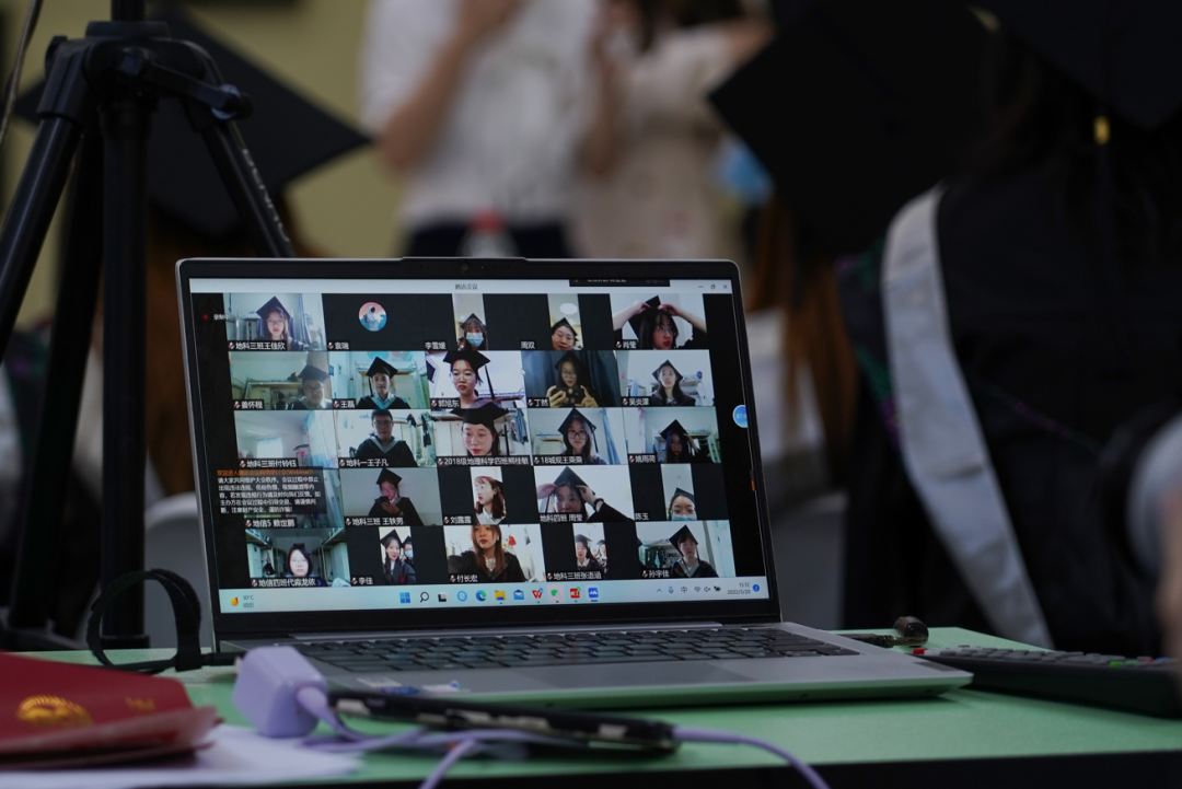 体在校毕业生在云端整齐地穿着学士服,打开摄像头,最后我们用全部截图的方式将意义非凡的时刻定格,为毕业生留下美好的青春记忆。特殊时期的毕业典礼虽有遗憾,但全部过程体现了温情和期冀,典礼以全体师生高喊的“毕业快乐”声中落下帷幕。
