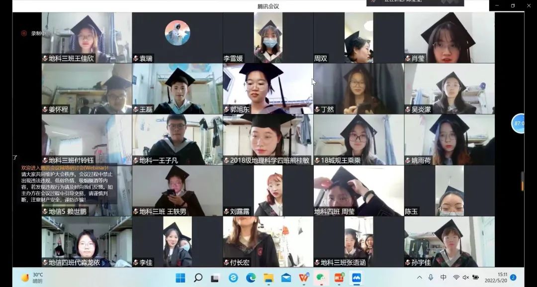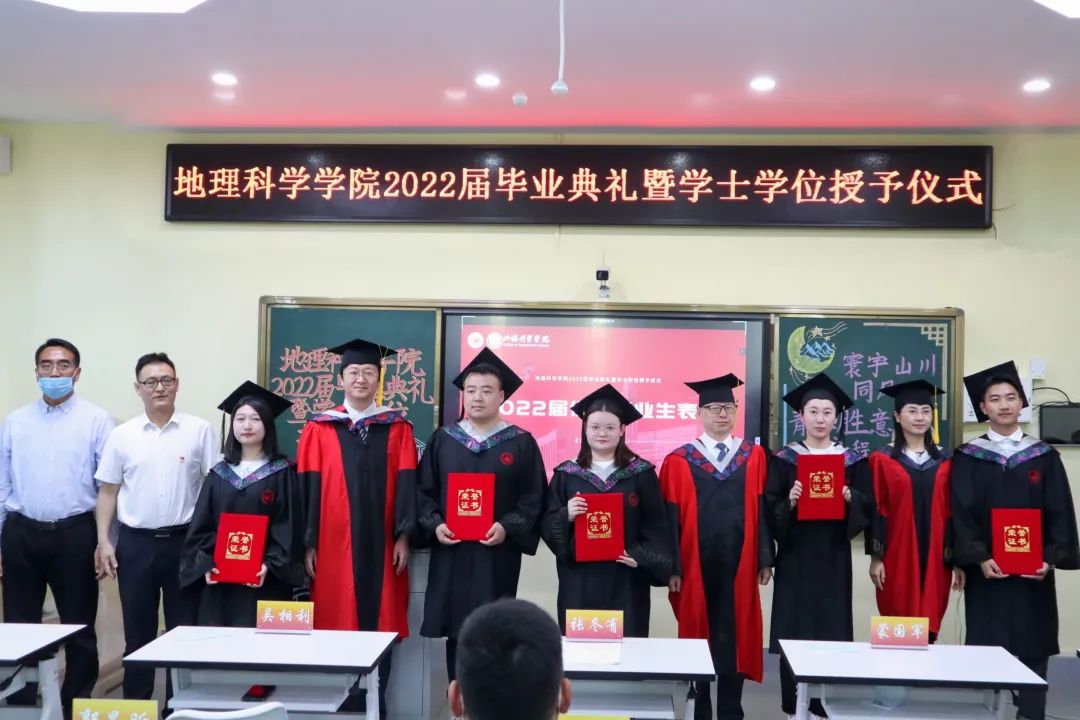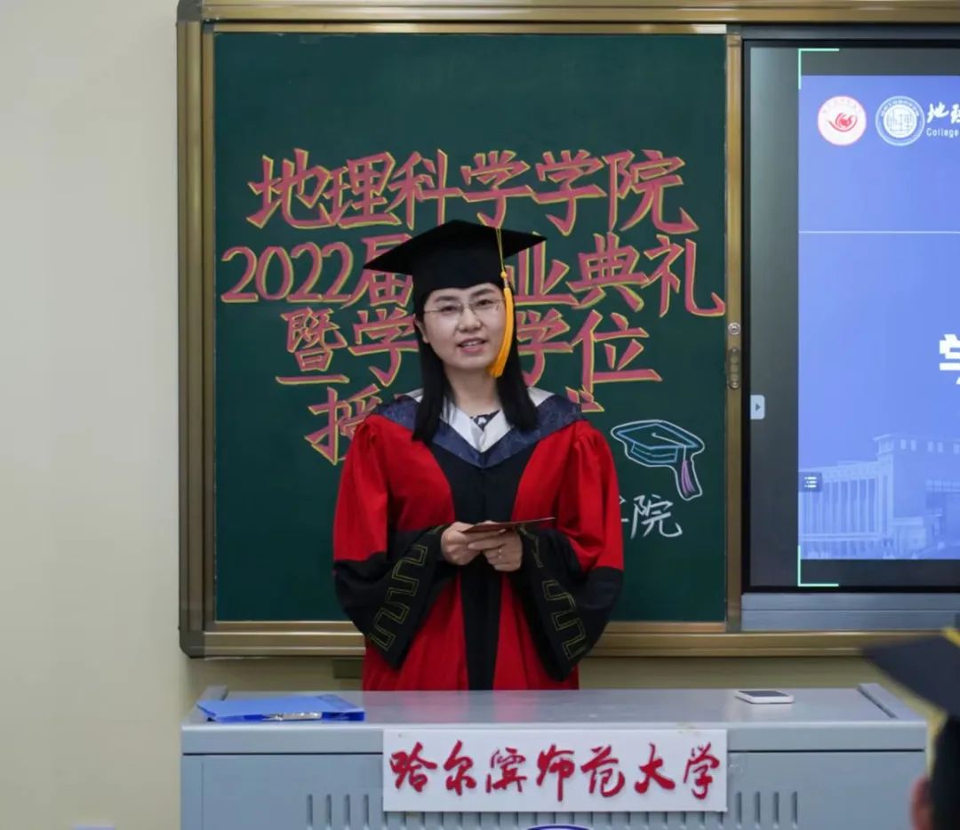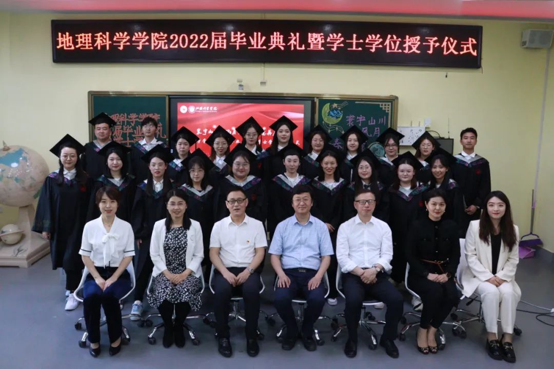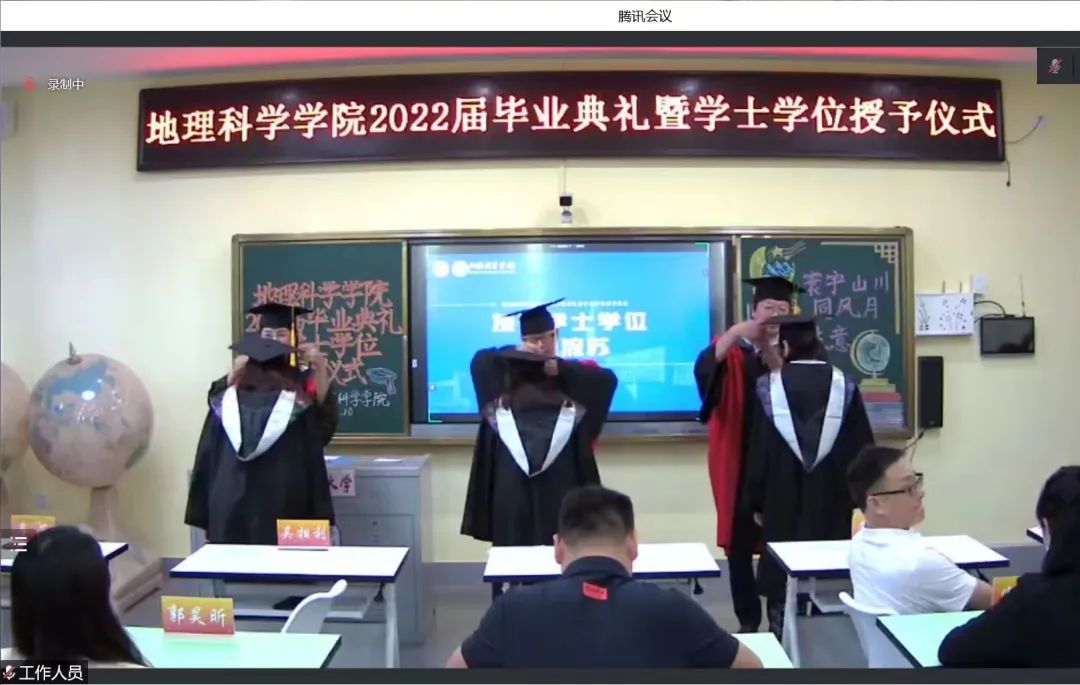 一程山水一年华,趁着风华正茂,青年以梦为马,整装待发。为贯彻落实《哈尔滨师范大学大学生思想政治教育“112349”工作模式实施方案》,做好毕业生离校服务工作,增强学生的母校情结,培育大学生家国情怀,指引毕业生树立正确的人生观,激励在校大学生既往开来,传承行知精神。KY.COM于2022年5月20日在理工三号楼215采用线上线下结合的方式隆重举行“寰宇山川同风月,青春胜意再启程”2022届毕业典礼暨学士学位授予仪式。地理科学学院党委书记蒙国军、院长张冬有、副院长吴相利、副院长李苗、正处级辅导员张立辉、全体辅导员出席本次活动,2018级辅导员陈莹莹主持本次毕业典礼,部分毕业生代表线下参加,其余全体毕业生线上观看。