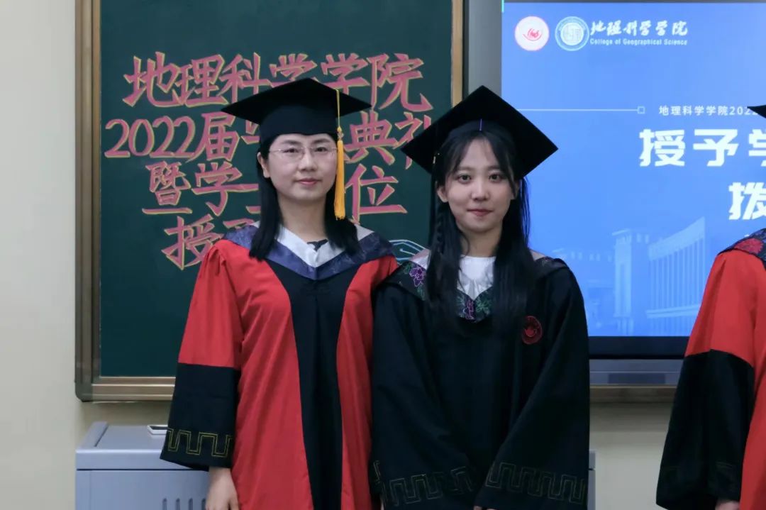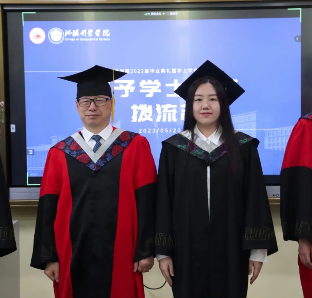 接着,地理科学学院博士生导师、院长张冬有教授,博士生导师、副院长吴相利教授,硕士生导师、副院长李苗副教授为现场毕业生拨流苏,为毕业生们送上真挚祝福,并与毕业生合影留念。