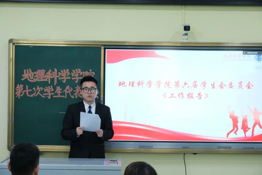 接着,学院第六届学生会委员会主席团执行主席张俊昊向大会作《第六届地理科学学院学生会委员会工作报告》,从学生比赛、趣味活动、大型活动、社会实践、第二课堂和工作总结等六个方面进行汇报,同时也表达了对学生干部们接续奋斗、再续辉煌的美好祝愿。与会代表根据《工作报告》(草案)以及《KY.COM学生会章程》(草案)展开讨论,提出了修改意见。