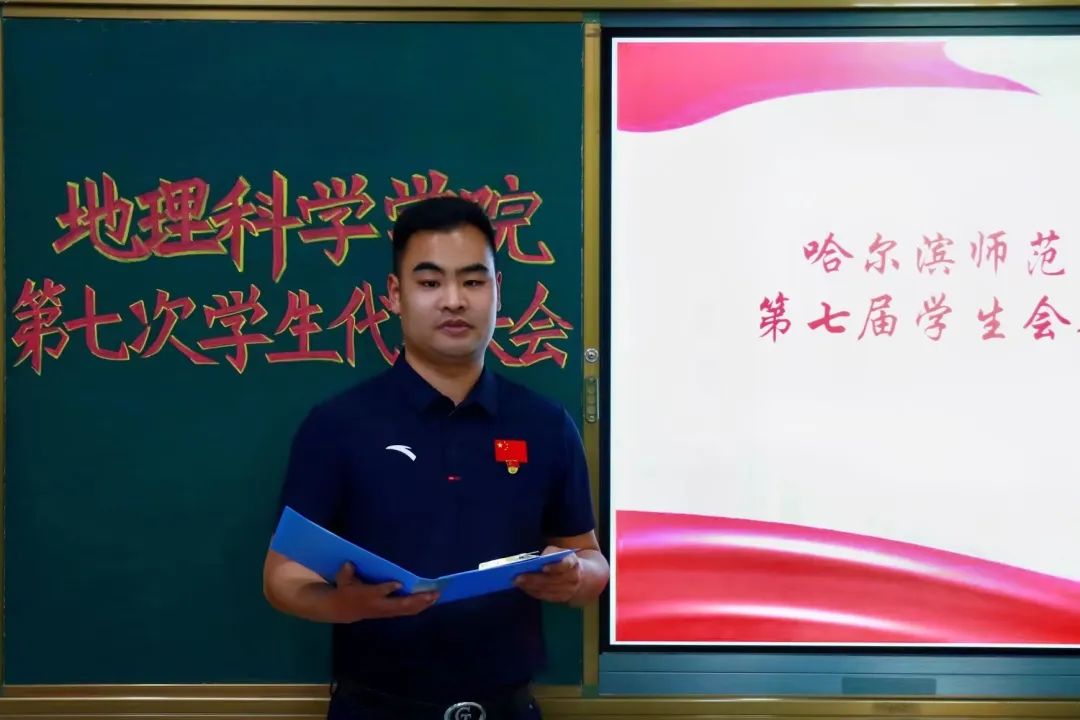 为深入贯彻落实《中华全国学生联合会章程》及《哈尔滨师范大学学生会章程》,全面贯彻习近平新时代中国特色社会主义思想,进一步增强学院学生组织内部的凝聚力和积极性,地理科学学院严格遵守防疫要求,秉持着巩固发展学生组织改革成果的理念,于2022年5月15日采用线上与线下相结合的方式,在腾讯会议与理工三215室同步召开第七次学生代表大会。地理科学学院党委书记蒙国军、正处级辅导员张立辉、团委书记陈莹莹、学工办主任宋歌、各年级辅导员老师及109名学生代表参加本次会议。