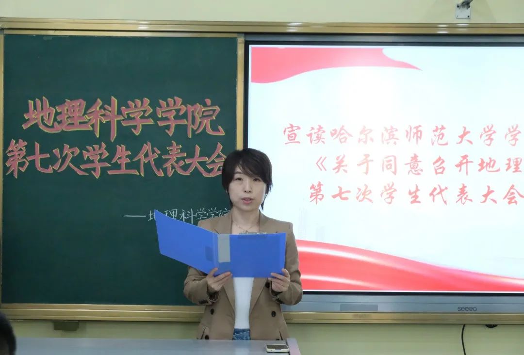 本次大会在师生嘹亮的国歌声中拉开序幕。会议伊始,地理科学学院团委书记、2018级辅导员陈莹莹宣读了哈尔滨师范大学学生会委员会《KY.COM同意召开KY.COM第七次学生代表大会的批复》,并预祝大会顺利完成各项议题,圆满成功。