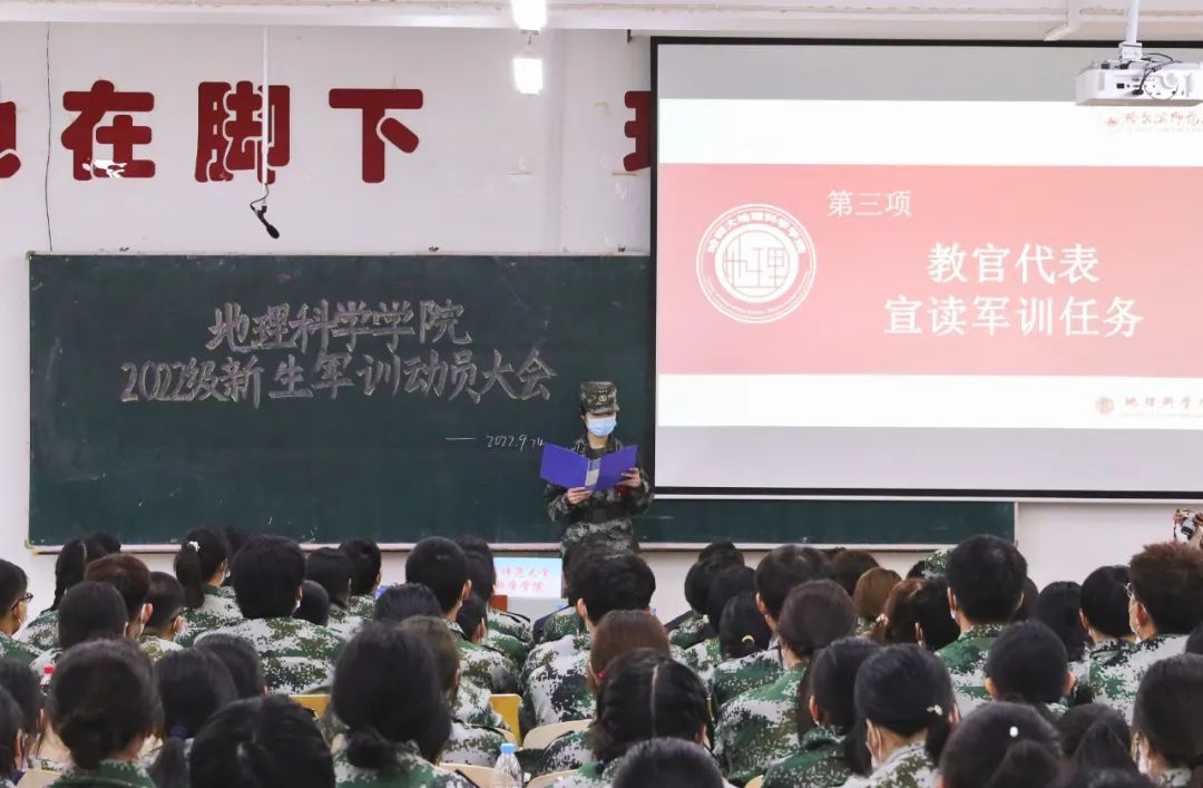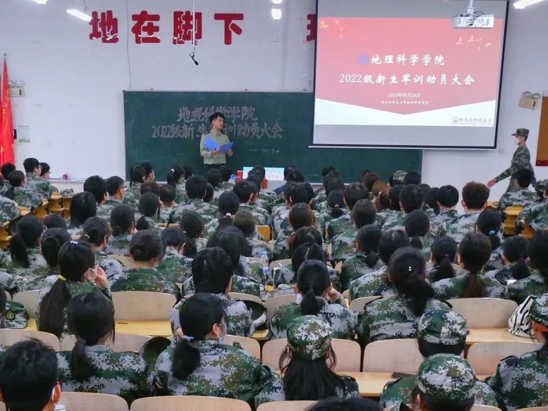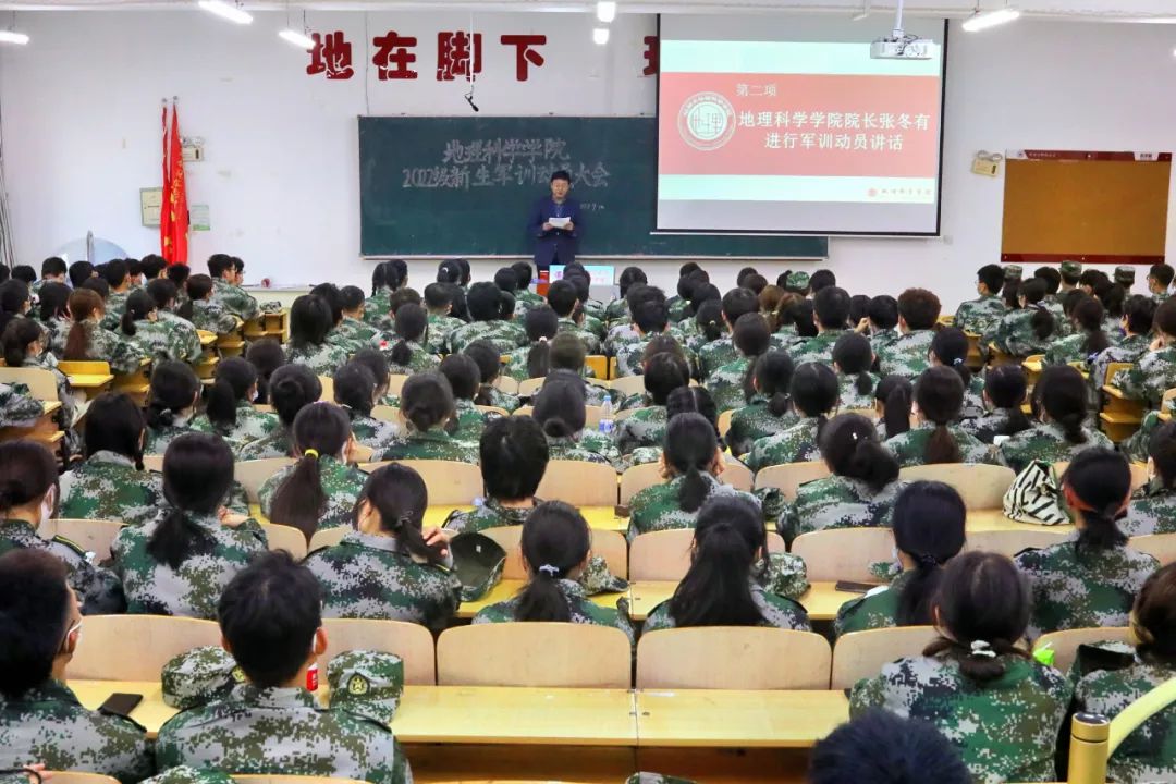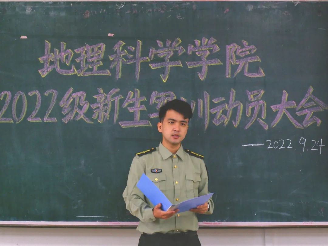 少年不惧岁月长,彼方尚有荣光在。为深入贯彻《加强和改进新时代全民国防教育工作的意见》,提高学生的思想政治觉悟,激发爱国热情,增强国防观念和国家安全意识,培养艰苦奋斗的作风。地理科学学院于2022年9月24日上午9点在理工三号楼122室、220室召开2022级新生军训动员大会,地理科学学院院长张冬有,正处级辅导员张立辉,团委书记、2022级辅导员陈莹莹,学工办主任宋歌以及2022级全体本科生参加本次会议。本次动员大会由2022级辅导员李昀东主持。