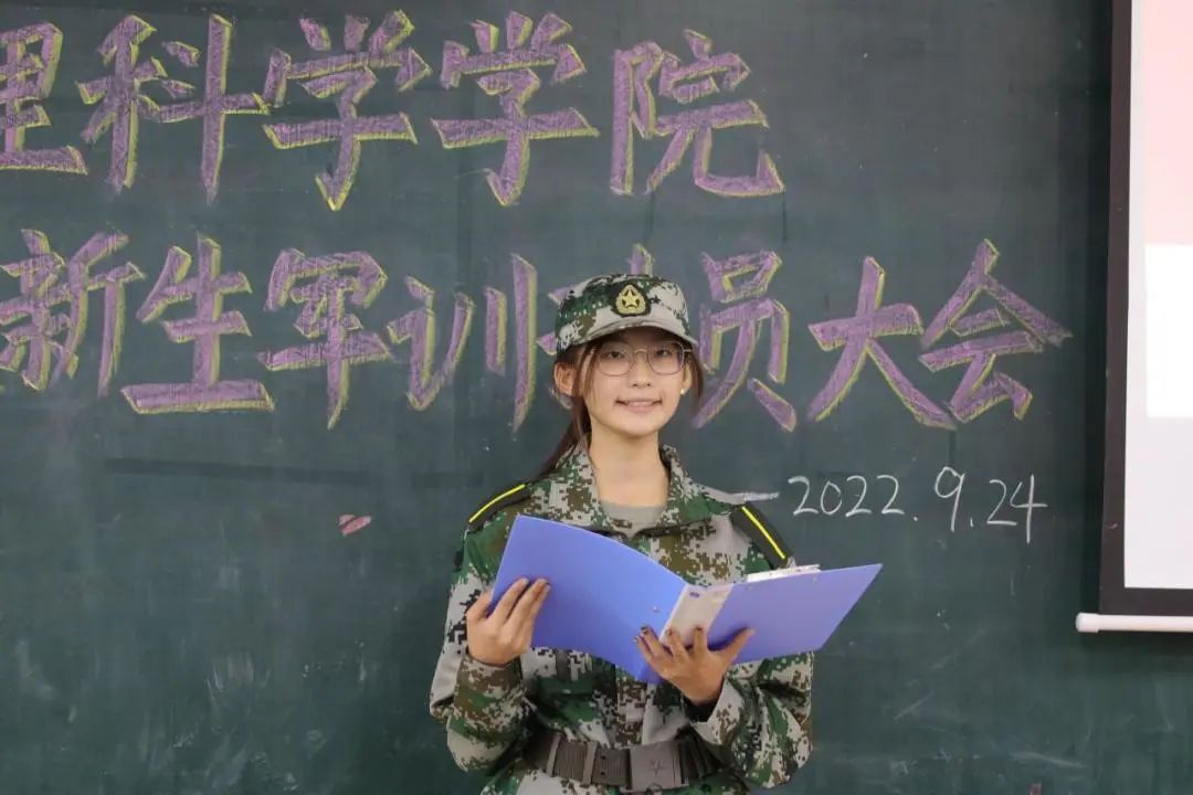 大会第五项,2022级受训新生发言。首先是一连2022级地理科学三班的范佳一秀同学发言,她表示很荣幸能够在此次大会作为受训新生代表发言,我们定会以格遵守校规校纪和各项规章制度,听从教官和老师的管理和安排,在教官讲解要领时全神贯注地听,训练时要善于动脑全身心投入地学,刻苦学习军训知识和内务管理知识,以振奋的精神状态,接受军训的锤炼,出色完成各项训练任务,并以崭新的面貌投入到今后的学习生活中,展示自己的青春风采。