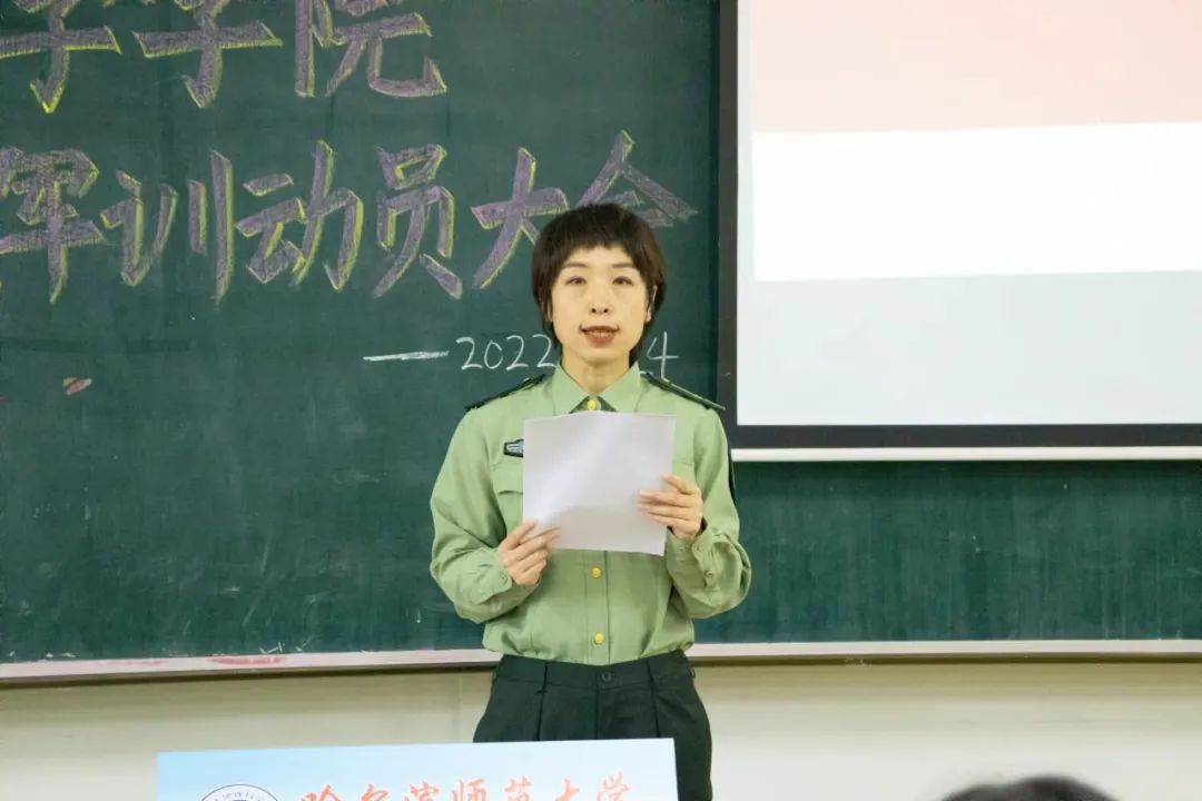 大会第三项,教官代表宣读《哈尔滨师范大学学生军训管理规章制度》,并对一日生活制度、请销假制度、报告制度进行详细解读。要求全体参训同学严格遵守“十必须”准则,以新时代青年人的气魄,高标准、高质量地完成本次军训。