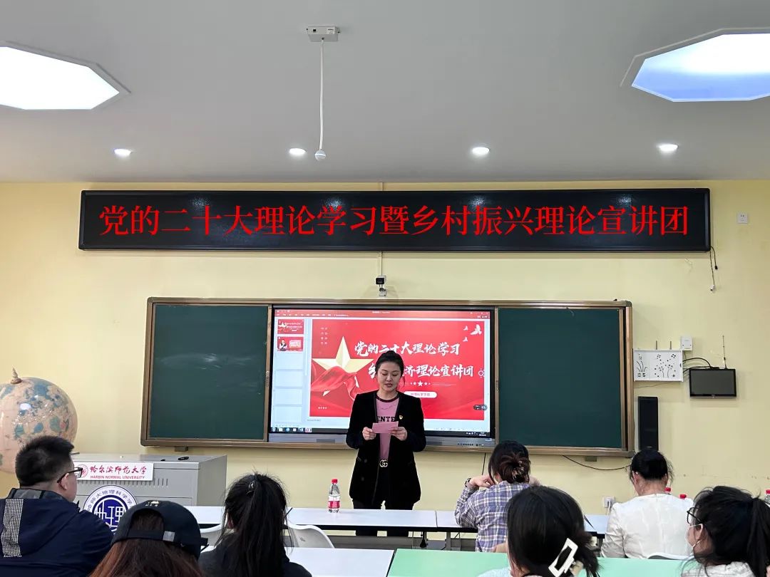 本次开班仪式由地理科学学院地信研究生第一党支部书记宋歌老师主持,她表示成立宣讲团是为了加快龙江建设新发展格局,着力推动龙江高质量发展,切实把党中央KY.COM全面推进乡村振兴的战略意图学好、领会好,把工作部署好、贯彻好、执行好。同时向大家宣布宣讲团成员名单。