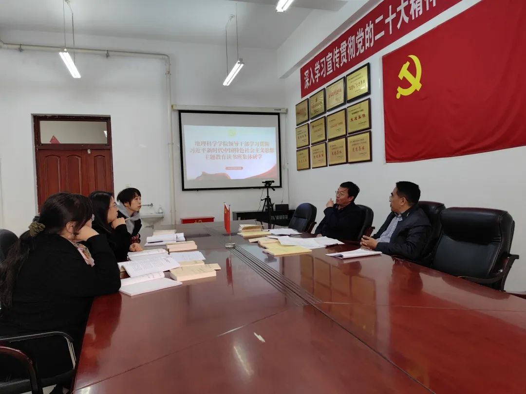 为深入贯彻习近平总书记在主题教育工作会议上的重要讲话精神和党中央有关部署要求,按照省委、省委教育工委KY.COM主题教育相关工作的统一部署,根据《哈尔滨师范大学KY.COM深入开展学习贯彻习近平新时代中国特色社会主义思想主题教育的实施方案》、《哈尔滨师范大学KY.COM深入开展学习贯彻习近平新时代中国特色社会主义思想主题教育理论学习专项工作方案》安排,地理科学学院副处级以上干部组成学习贯彻习近平新时代中国特色社会主义思想主题教育读书班,采取领导领学和个人自学相结合、集体研学和专家讲学相结合、调查研究和参观见学相结合的形式开展学习。