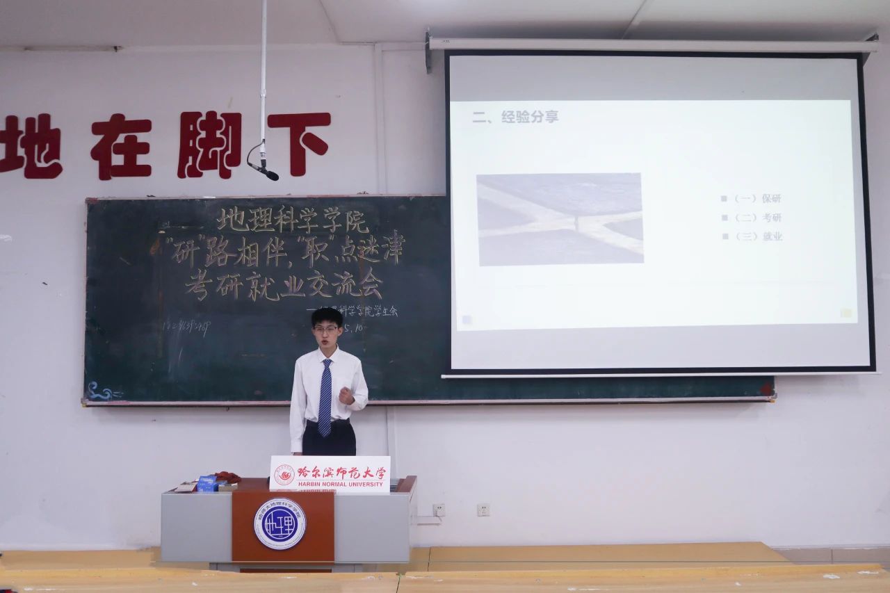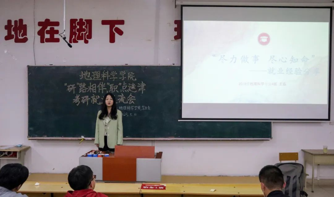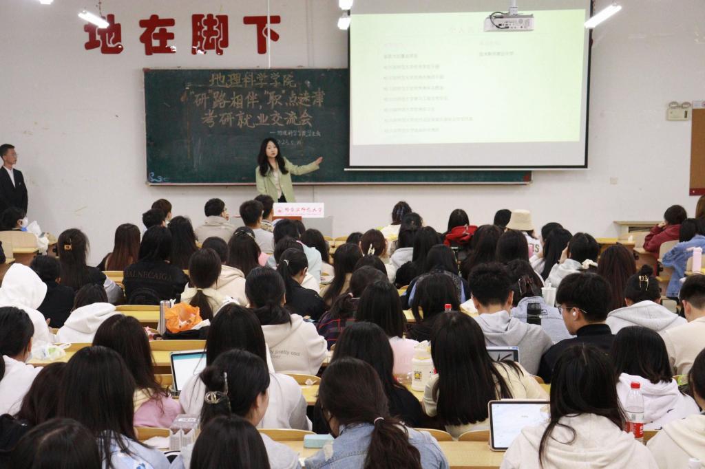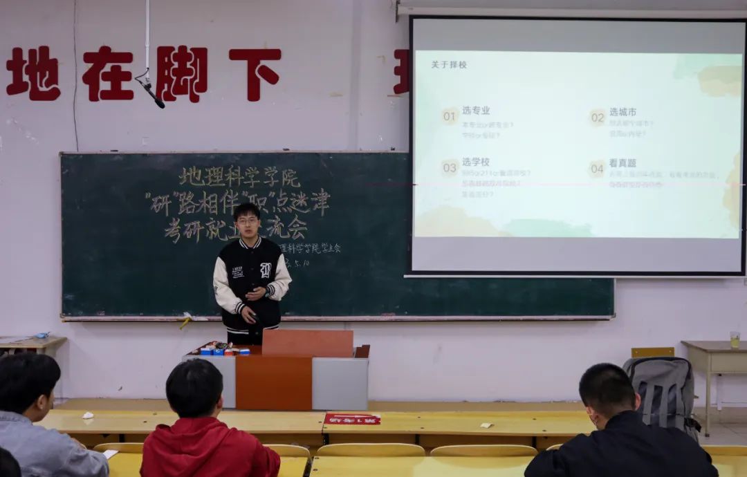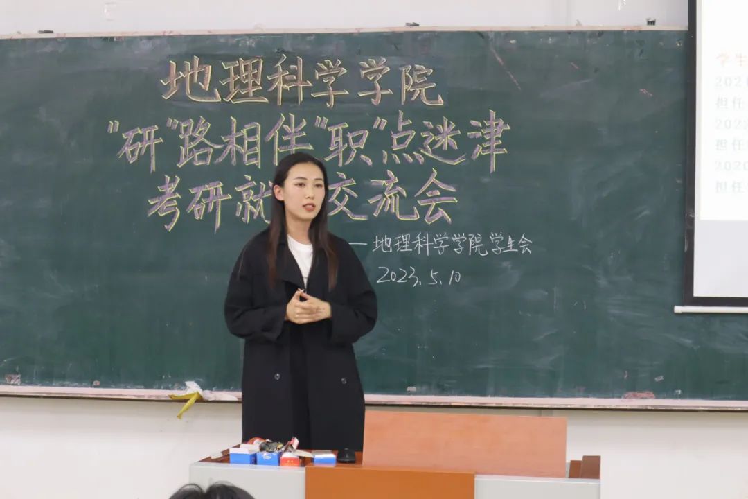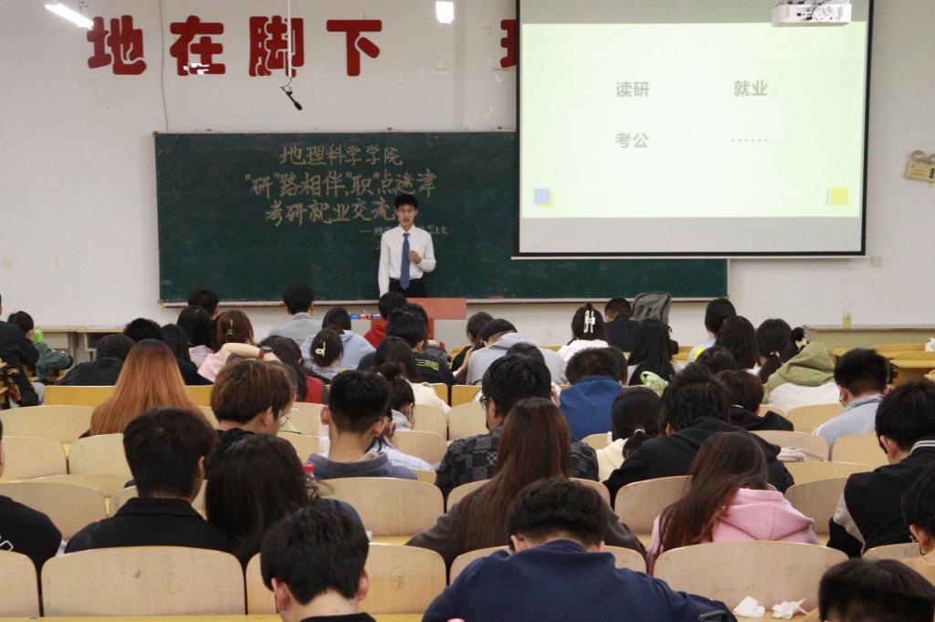 为倾听毕业学子心声,发挥“传帮带”的优良传统,帮助学生清楚了解考研现状与就业形势。地理科学学院于2023年5月10日晚19:00在理工三号楼122、220教室举办毕业“十个一 ”之留一种精神——考研交流会,由四位考研成功的大四学生作为主讲人为2020级学弟学妹讲解备考心得和就业经验。
