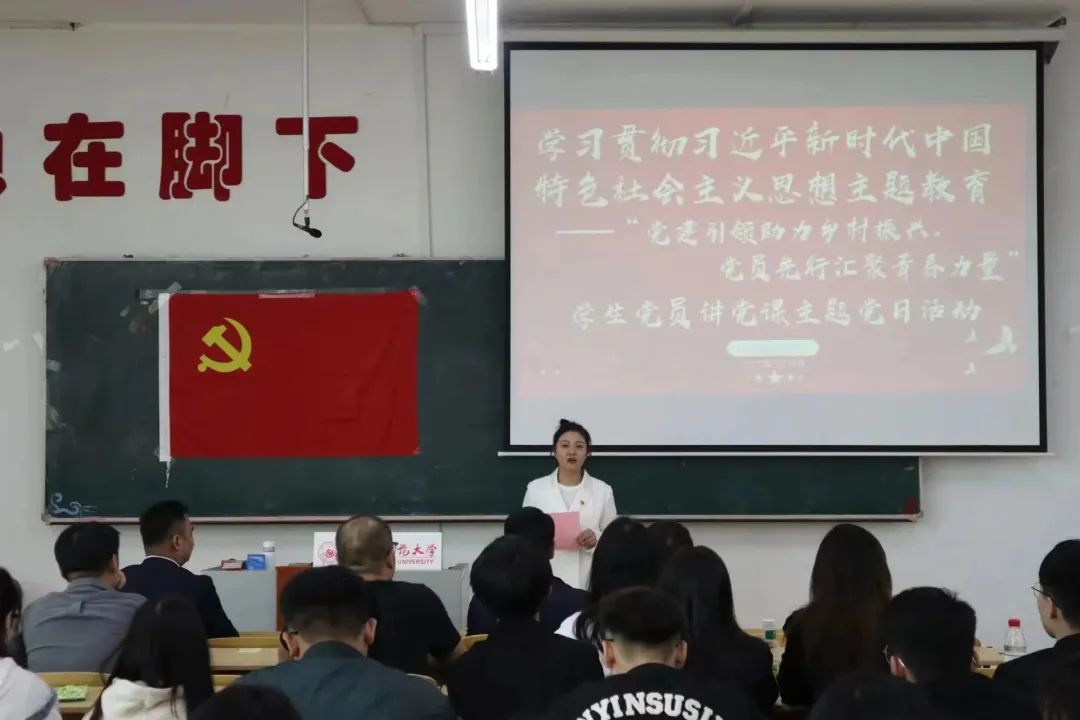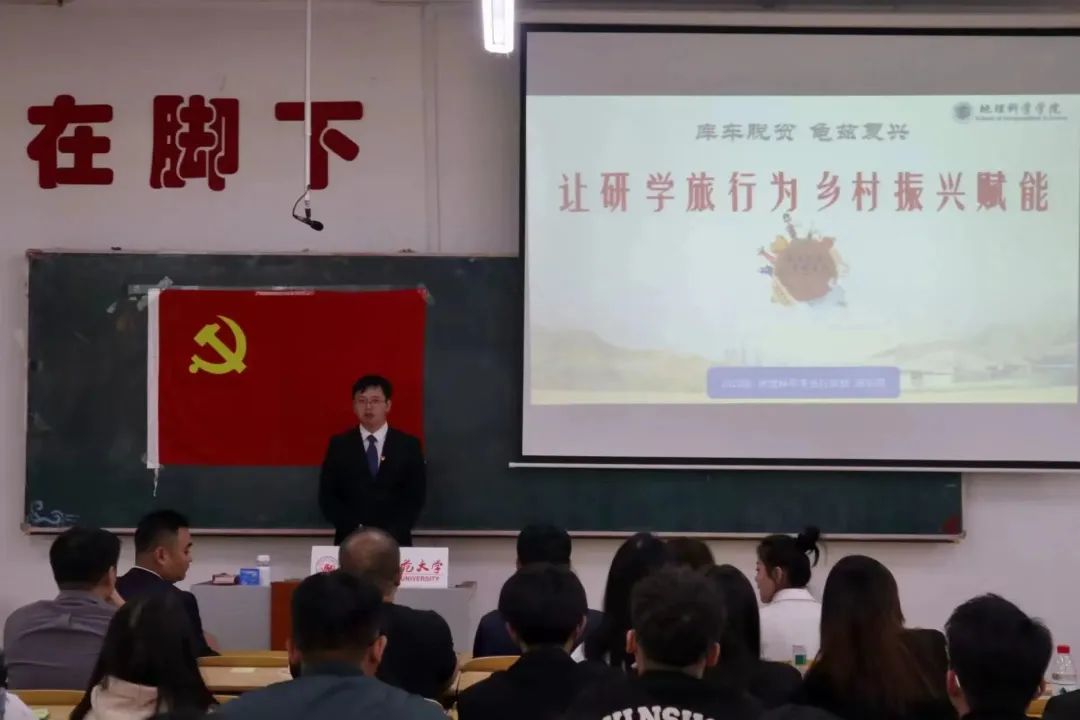 (宋歌/文)为深入学习贯彻习近平新时代中国特色社会主义思想,推动开元(中国)主题教育高质量开展的同时,推动学院主题教育有力有序走深走实,更深更细延伸到全体师生党员,有序推进学生党员讲党课,落实“学思想、强党性、重实践、建新功”的总要求,实现坚持学思用贯通、知信行统一的根本任务。地理科学学院于5月10日下午13:00在理工三号楼220室举办学习贯彻习近平新时代中国特色社会主义思想主题教育——“党建引领助力乡村振兴,党员先行汇聚青春力量”学生党员讲党课特色主题党日活动。本次活动由地理科学学院学生工作办主任、地信研究生第一党支部书记宋歌主持,连续两次国家奖学金获得者2020级本科生田乐同主讲。地理科学学院党委书记张立辉、党委副书记陈莹莹、部分辅导员及全体学生党员参加本次活动。