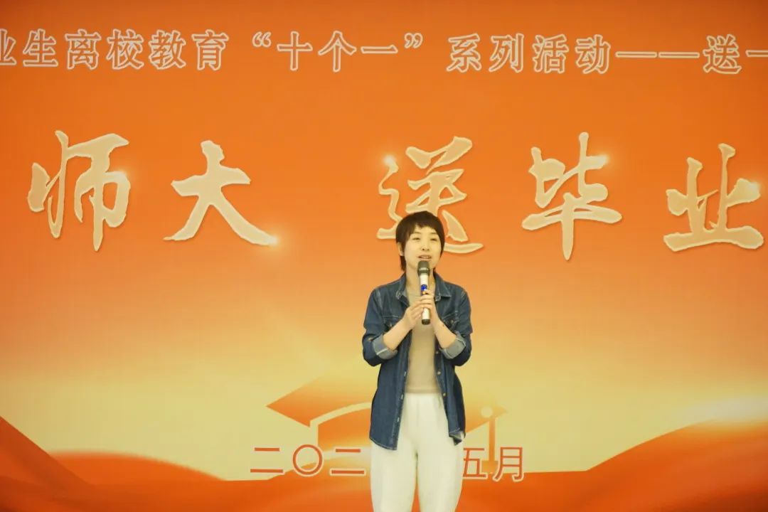 婉转悠扬的校歌将大家的思绪汇聚到大学四年的点滴回忆中。随后,陈莹莹致辞,希望2023届毕业生能够谨记“敦品励学,弘毅致远”的校训精神和“地在脚下,理想如花”的院训精神,果敢坚定地奔向人生舞台。相信同学们在未来不管遇到什么样的艰难险阻,都不会放弃,用在母校蓄积的学识和本领披荆斩棘,相信同学们一定会前途更加坦荡,未来可期。
