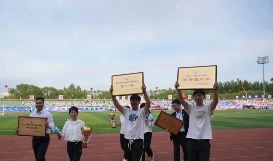 踏着轻快的步伐,舞动时代的旋律,展现最美的青春模样。由我院80名学生组成的小型团体操表演在绿茵场上大展风采,多个舞种融会贯通、意蕴深厚、精彩绝伦,赢得现场观众一致好评,并荣获中小型舞蹈节目一等奖第一名!追梦少年无惧风雨,跳出精彩,日夜辛勤终换来熠熠闪光的荣耀。
