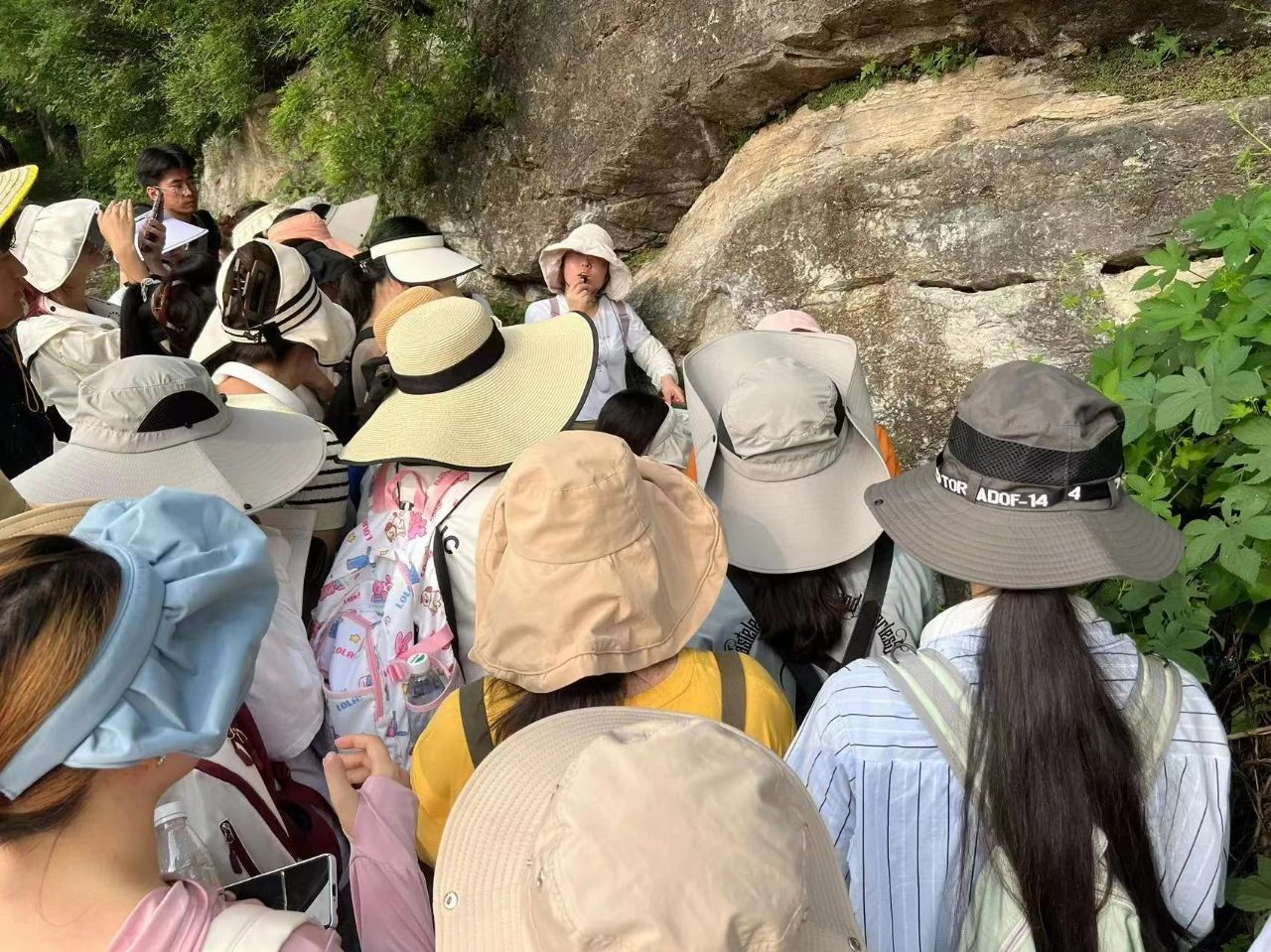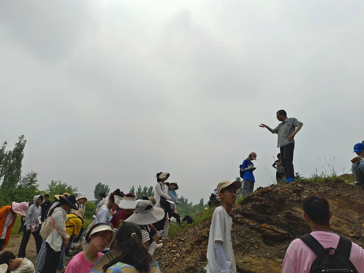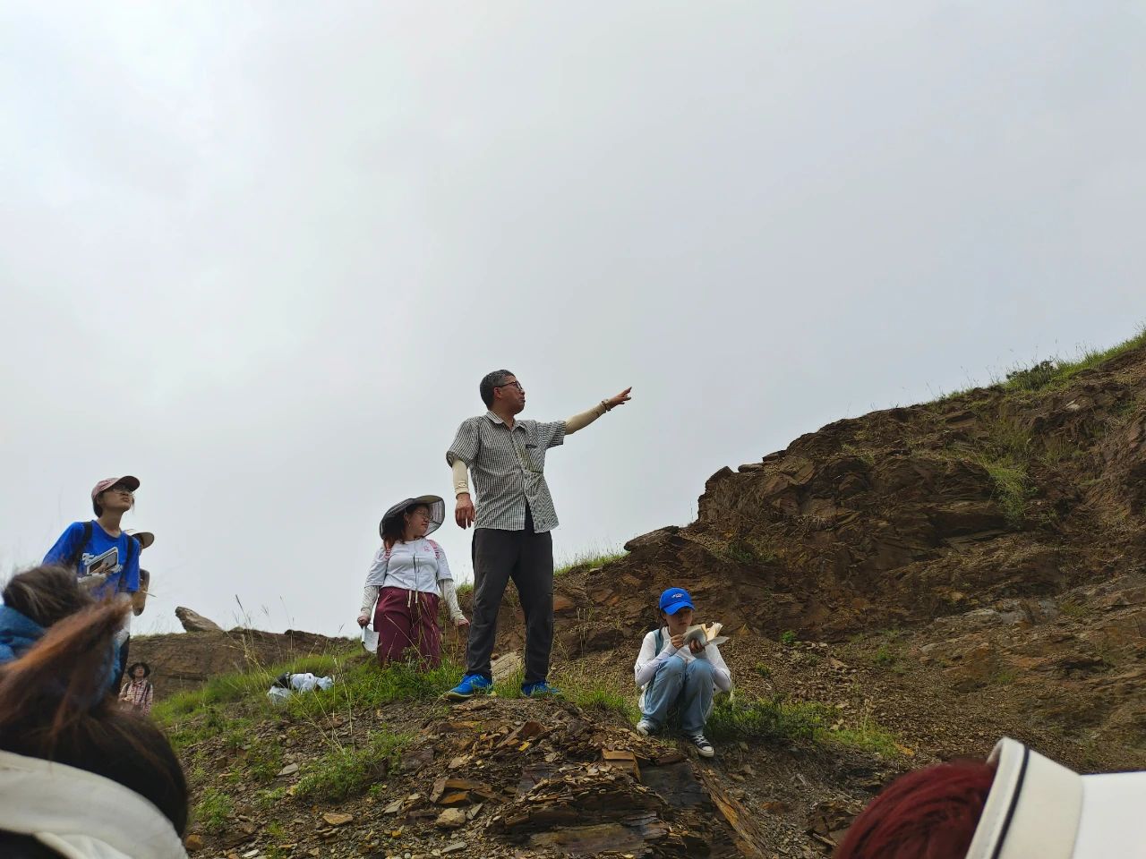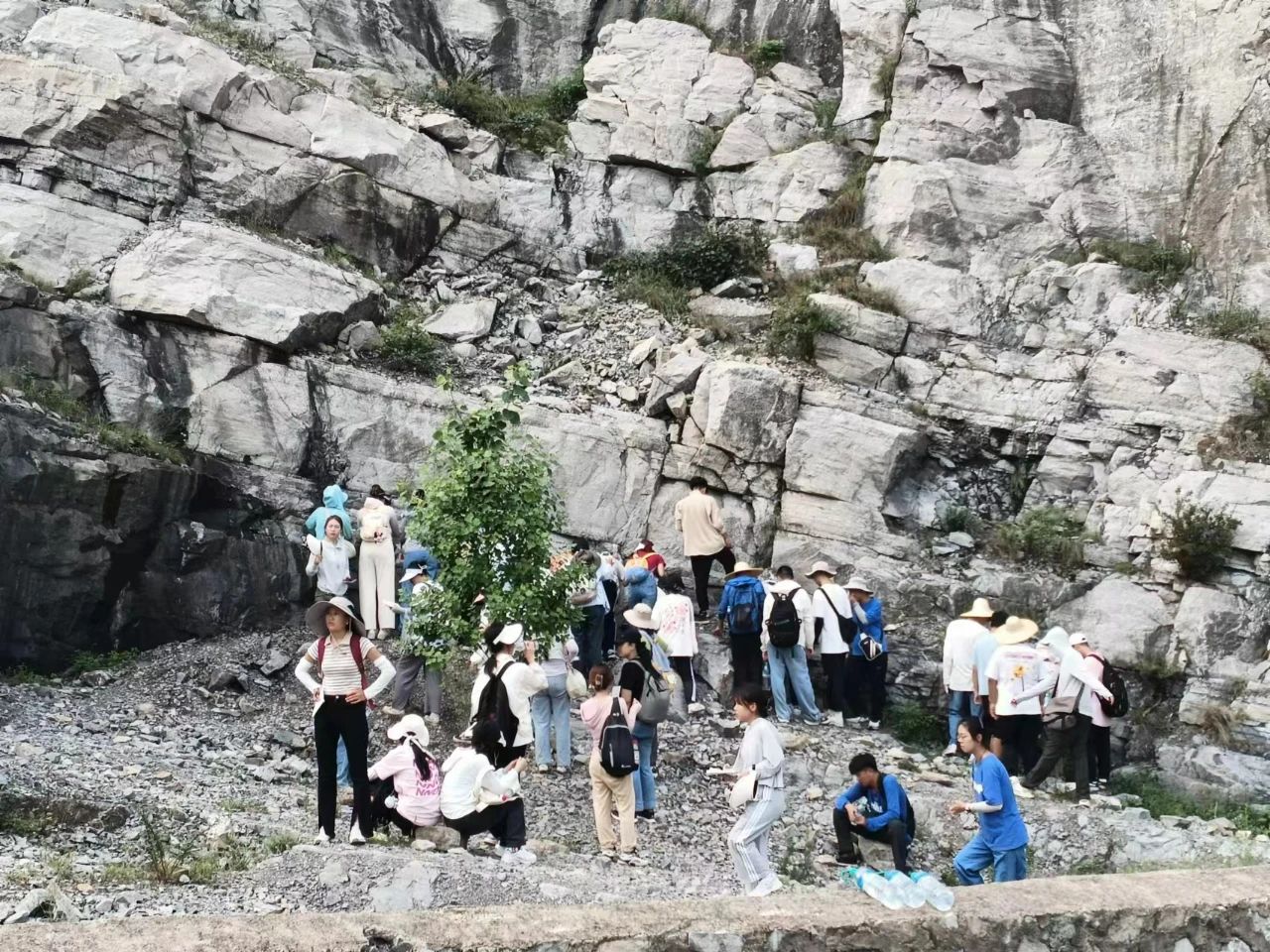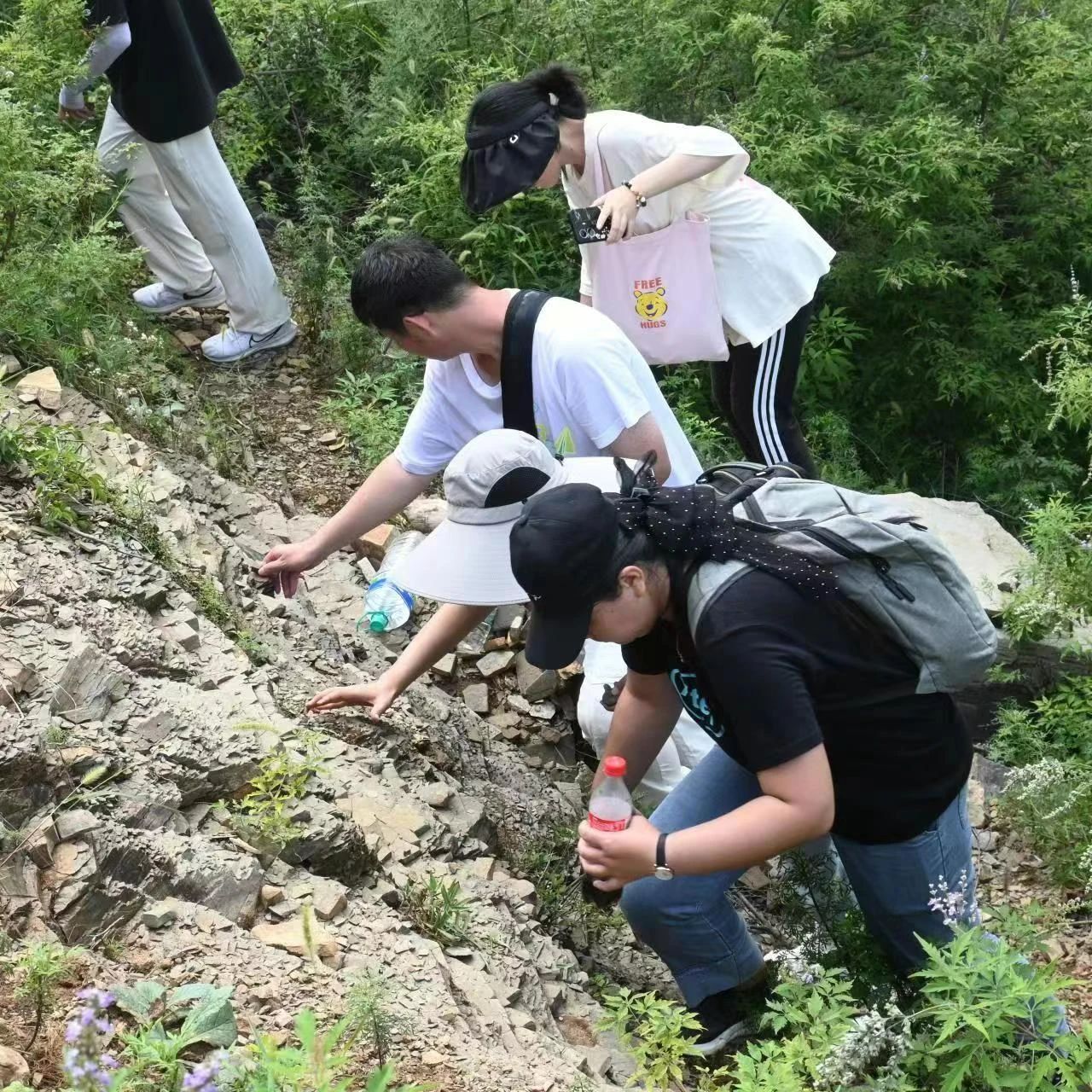 8月19日清晨,实习队前往潮水峪。为了更加清晰地观察地层并体会挖掘化石的乐趣,带队教师选择了穿越潮水峪东山至王铁庄路线。