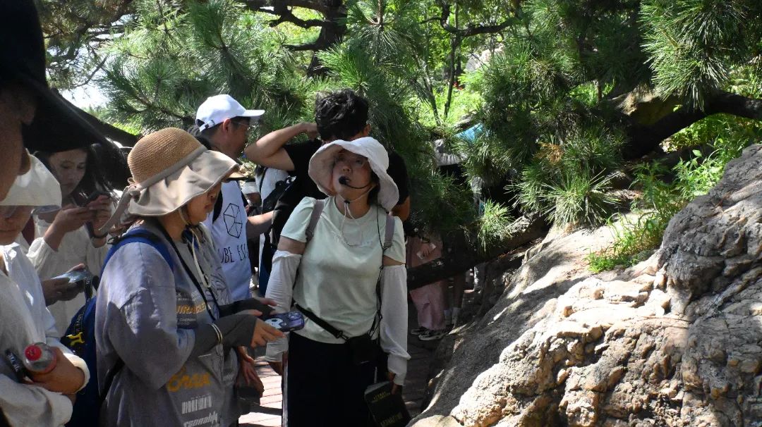 8月22日清晨,带队教师带领学生前往北戴河鸽子窝公园,观察丰富的基岩海岸地貌。在老师的讲解下,同学们观察到海蚀沟、海蚀凹槽、海蚀岩礁、海蚀崖、海蚀柱、波切台等地貌。