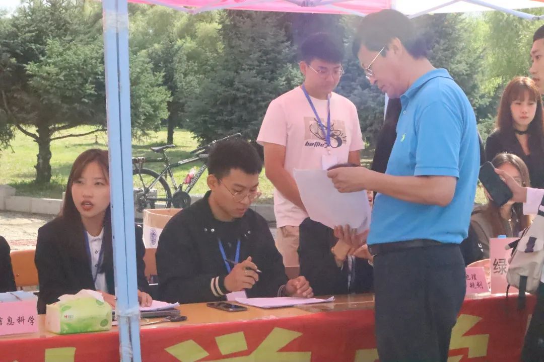 2023级研究生新生辅导员宋歌老师和本科生新生辅导员刘国英老师同新生及家长热情交流,欢迎同学们的到来,耐心为同学们解答学科专业、校园生活等各方面事务的疑问。一届又一届,不变的是辅导员老师对同学们真挚的关怀,是学生干部对情感的传承以及作为学长学姐应有的责任。