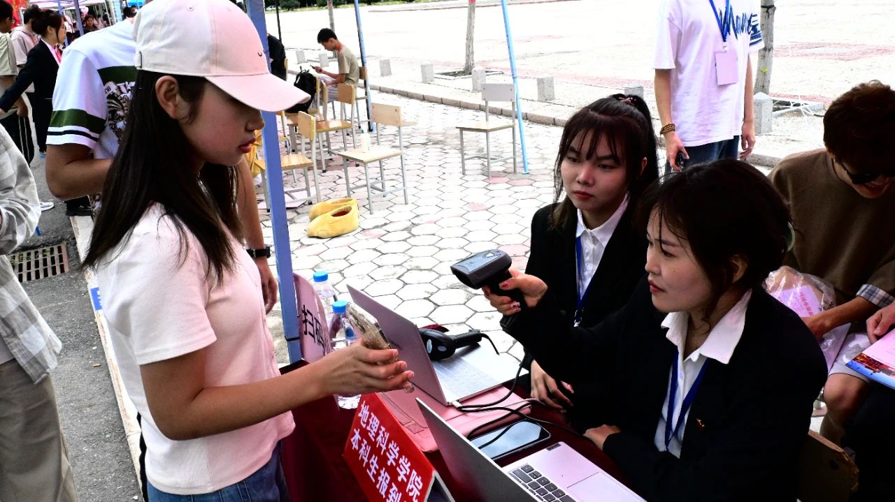 我院各级学生干部组建了一支效率高、作风正、肯吃苦的志愿服务团队。当新生抵达校门口报到时,地理科学学院的迎新志愿者们早已在此等候,以高度的热情主动接过新生手中沉重的行李,耐心解答新生对校园的疑问,奔向地理大家庭的方向。随后,他们各司其职,有条不紊地扫描入校码、查验录取通知书、核对基本信息、发放校园卡和住宿卡,热心帮助新生完成报到工作。