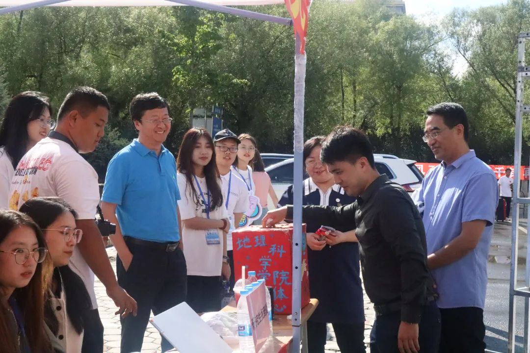 为保障迎新工作顺利开展,地理科学学院党委书记张立辉、院长张冬有及学院其他领导、教师、全体辅导员来到迎新现场视察工作、掌握迎新工作进展,与学院新生辅导员、志愿者和2023级新生及家长进行慰问和交流。