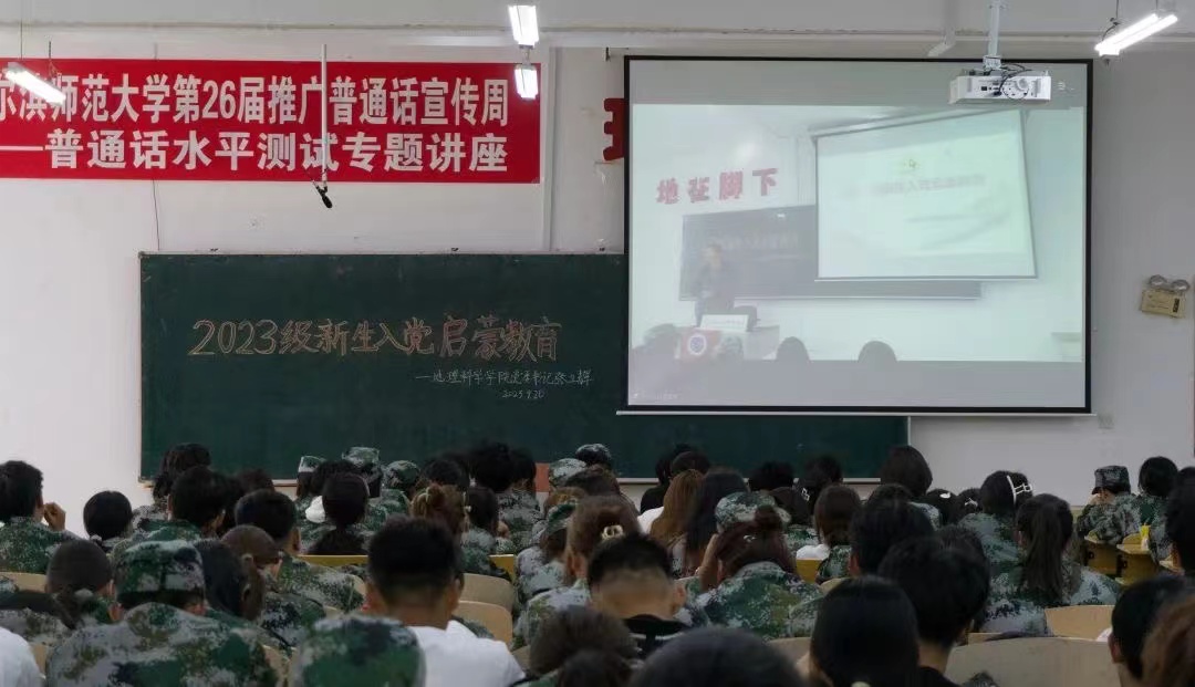 为深入贯彻《哈尔滨师范大学大学生思想政治教育“112349”工作模式实施方案》,落实《哈尔滨师范大学2023级新生入学教育方案》,帮助2023级新生深入了解掌握党的基本理论,深刻认识党的发展历程,端正入党动机,熟知入党程序,引导新生积极向党组织靠拢,9月20日下午,地理科学学院在理工三号楼122、220室召开2023级新生入党启蒙教育专题讲座,本次讲座由学院党委书记张立辉主讲,学院2023级全体新生参加讲座。