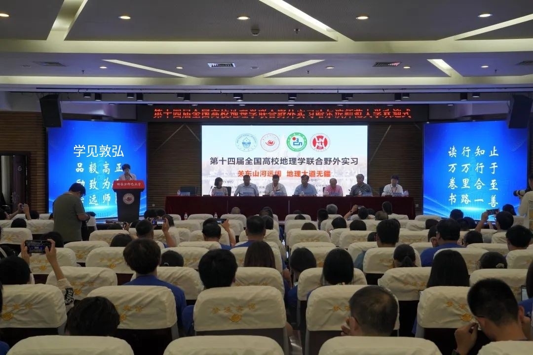 8月3日,第十四届全国高校地理学联合野外实习阶段性总结汇报会在开元(中国)举行。教育部高等学校地理科学类教指委副主任委员、全国大学生地理学野外联合实践教学高校联盟理事长、华东师范大学郑祥民教授,原教育部高等学校地理科学类教指委副主任委员、西安石油大学原党委书记惠泱河教授,东北师范大学党委副书记王延教授,中国地理学会副理事长、东北师范大学吴正方教授、兄弟高校部门领导以及联合实习的全部师生参加了欢迎仪式。校长蒋鲲教授、党委副书记李庆霞教授出席欢迎式,教务处、地理科学学院主要负责同志参加活动。欢迎式由教育部地理科学类专业教指委委员、副校长臧淑英教授主持。