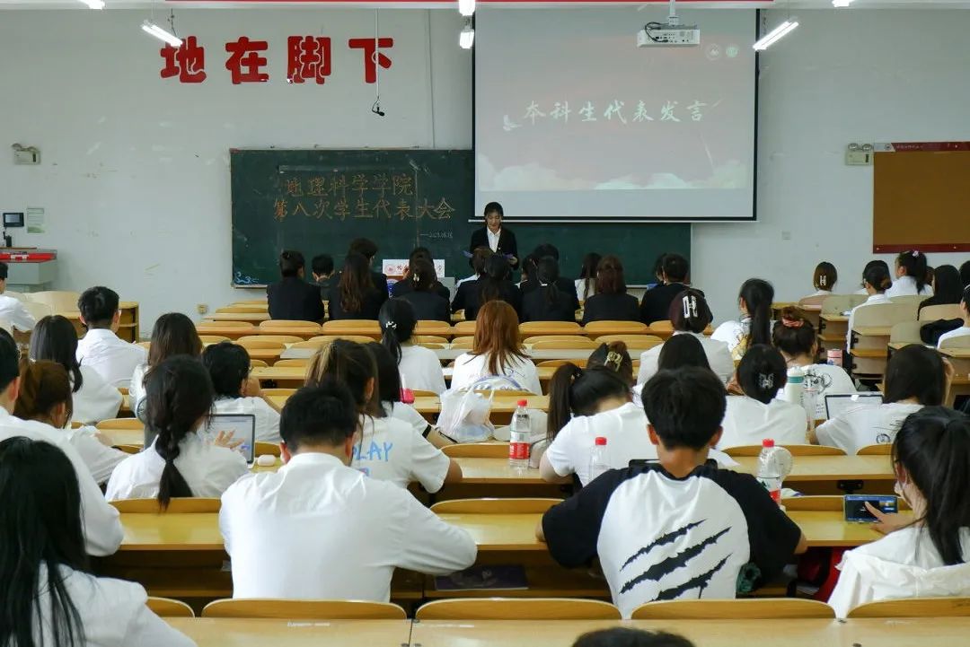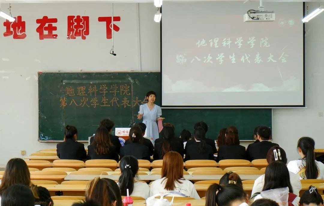 为深入贯彻落实《中华全国学生联合会章程》及《哈尔滨师范大学学生会章程》,全面贯彻习近平新时代中国特色社会主义思想,扎实推进学生组织改革,加强学生组织建设,增强学生组织的凝聚力和创新力,地理科学学院于2023年6月16日下午在理工三号楼220室召开第八次学生代表大会暨第五次研究生代表大会。地理科学学院党委副书记陈莹莹、学工办主任宋歌、2019级辅导员刘轲、2020级辅导员郭昊昕、2022级辅导员李昀东出席会议,学院104名本科生及研究生代表参加会议,会议由李昀东老师主持。