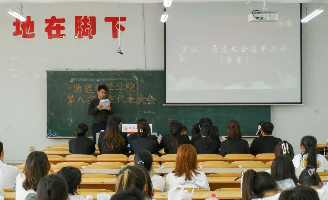 接下来,大会听取、审议并通过了《地理科学学院第八届学生会委员会、第五届研究生会委员会委员候选人名单》和《地理科学学院第八届学生会委员会、第五届研究生会委员会选举监票小组名单》。全体参会学生代表以无记名投票、差额选举的方式选举产生学院新一届学生会委员会、研究生会委员会委员。随后选举产生哈尔滨师范大学第二十三届学生代表大会暨第五届研究生代表大会地理科学学院学生代表。李昀东老师宣布选举结果。
