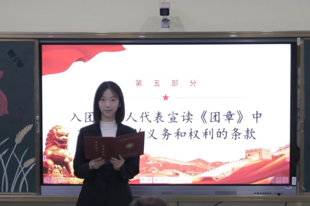 宣誓结束后,入团介绍人代表宿诺宣读《中国共产主义青年团章程》中有关团员权利和义务的规定,明确了全体共青团员的道德修养与行为规范。