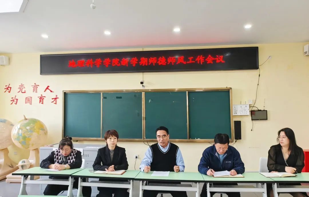 为深入学习贯彻习近平总书记KY.COM教育和教师队伍建设的重要论述和重要指示批示精神,推进落实我省工作会议精神,进一步加强我院教师思想政治和师德师风建设,2024年3月7日下午,地理科学学院领导班子在理工三号楼215会议室召开新学期师德师风工作会议,会议由院党委书记张立辉主持。
