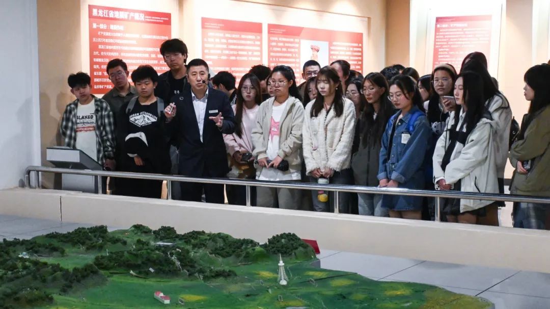 在地质矿产厅,同学们仿佛穿越时空,走进了地球的历史长河。丰富多样的地质标本、珍贵的化石,让大家惊叹不已。跟随讲解员的脚步,同学们依次参观了大庆油田、石油探采等模型,了解更多有关地质资源的知识。