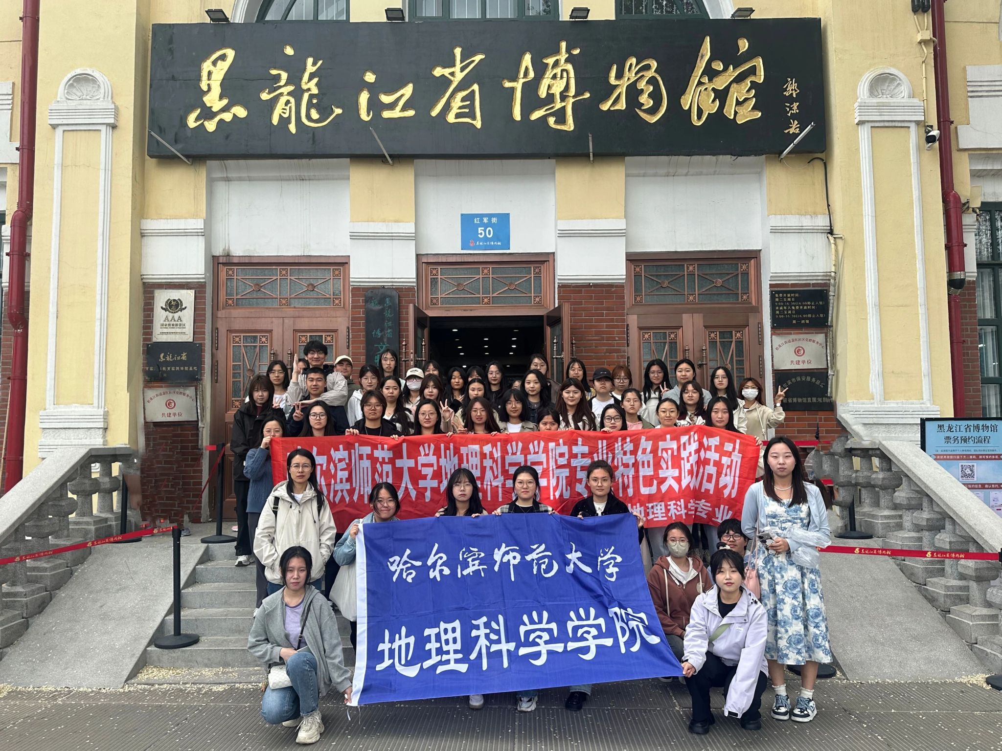 为全面落实立德树人根本任务,引导学生深入学习专业相关知识,将理论与实践有机结合,同时厚植乡土情怀,探寻龙江历史文化,5月11日,地理科学系教师吴祥文、王春光带领2022级地理科学专业行知实验班、三班和四班学生参观黑龙江省博物馆,开展专业特色实践活动。