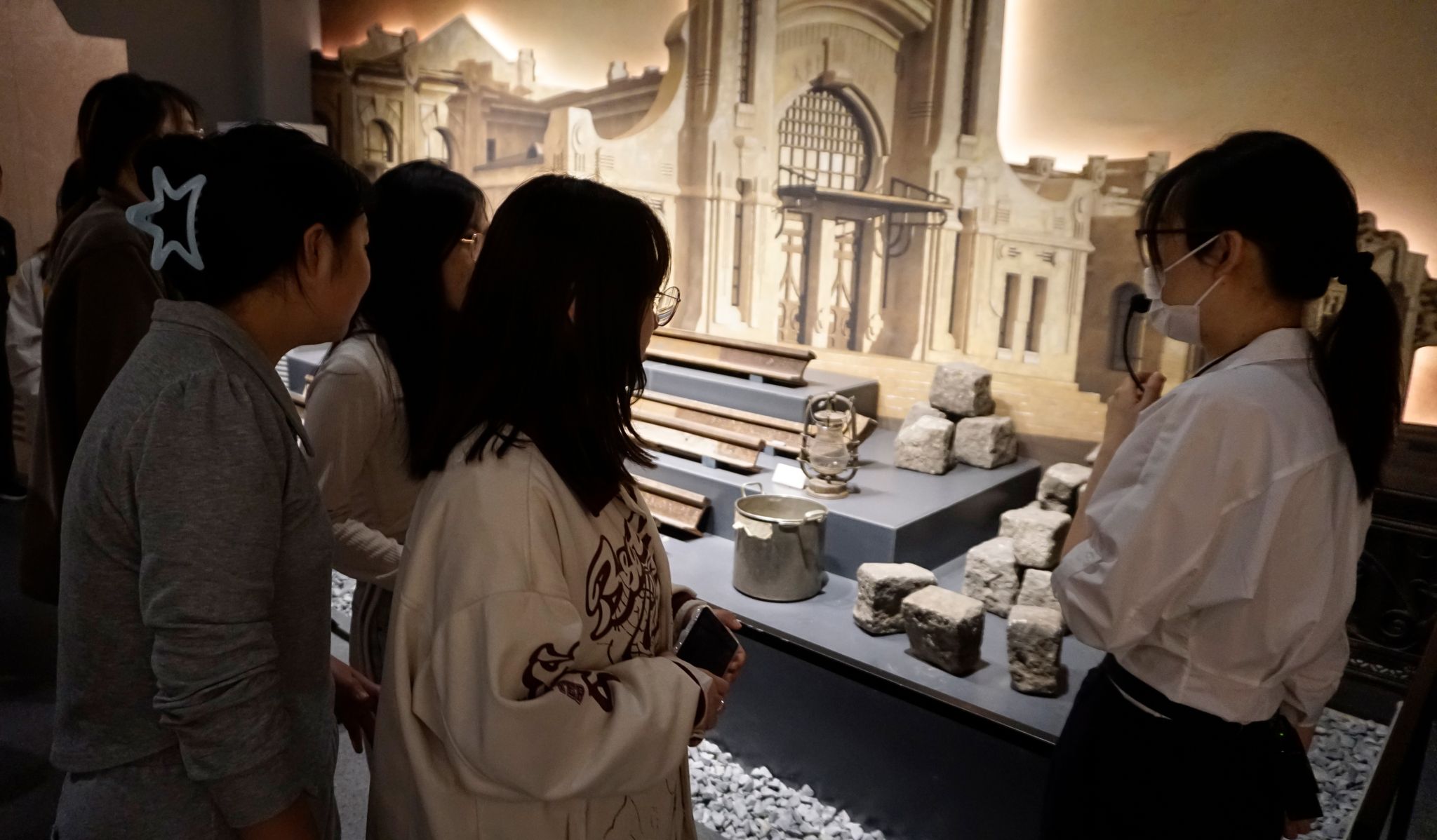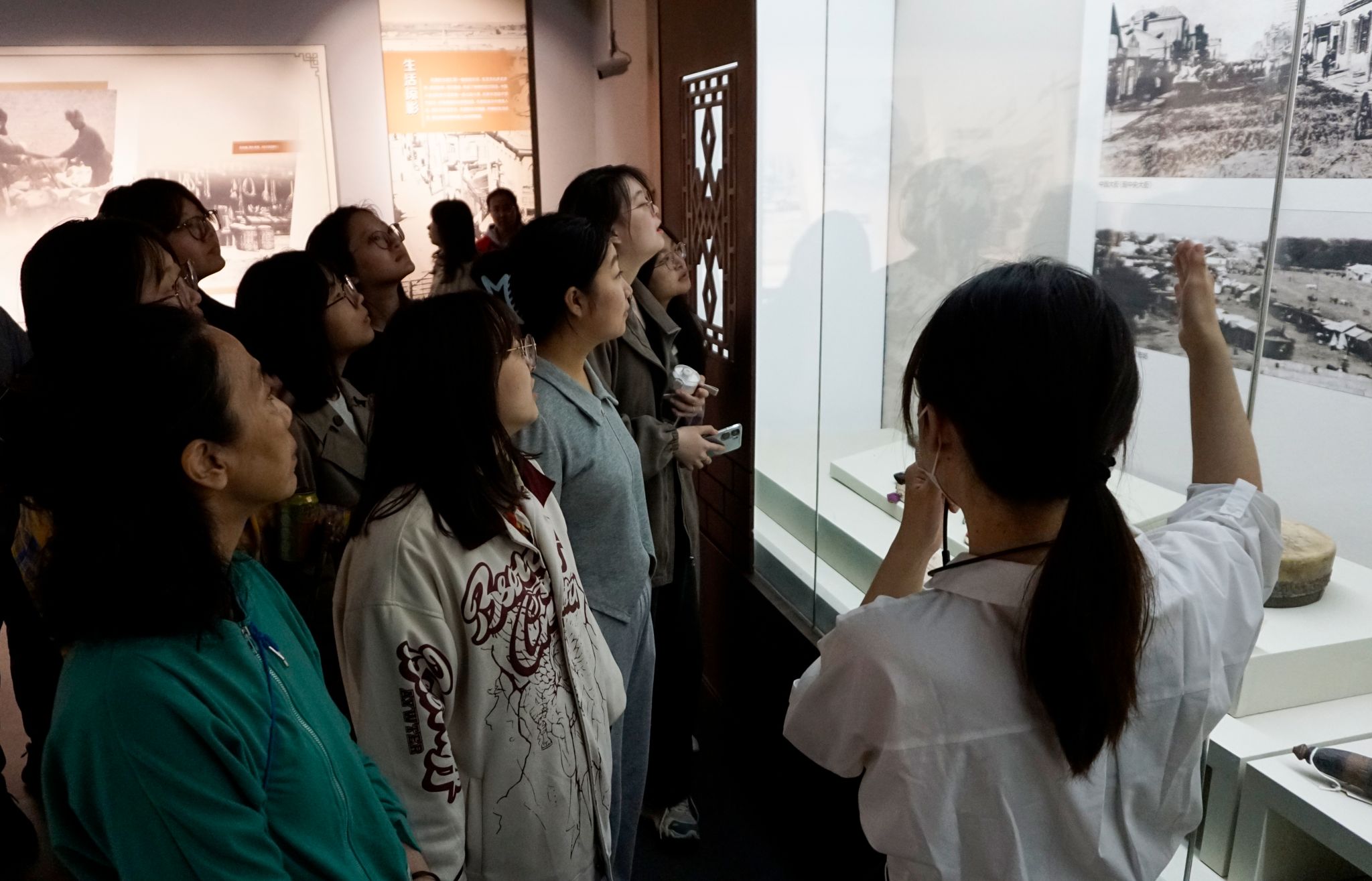 本展览通过移民定居、建路兴业和国际都市三个部分展示了20世纪初哈尔滨的文化风韵和独特风俗。回望百年,哈尔滨这座城市走过悠悠岁月,经历时代变迁形成了独特的城市文化。在讲解员的带领下,同学们依次参观了有关当地人民的生活习俗、铁路修建与科学方兴以及多元文化交融荟萃的主题展品,领会到百年前哈尔滨的文化多样性和哈尔滨在我国乃至国际范围的重要地位。