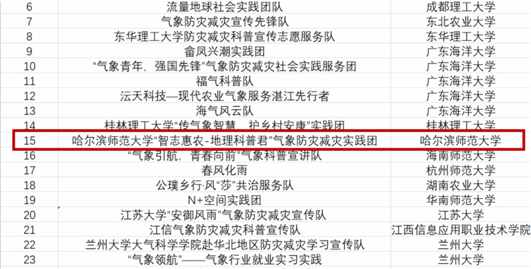 为深入学习贯彻习近平新时代中国特色社会主义思想,落实党的二十大精神,引导教育广大青年学生勇做担当民族复兴大任的时代新人,以实际行动服务经济社会发展,切实感受新时代伟大成就,促进大学生理论与实践相结合。地理科学学院积极响应校团委号召,组织学生参加大学生志愿者暑期“三下乡”社会实践。地理科学学院“智志惠农一地理科普君”气象防灾减灾实践团连续第二年入选“气象防灾减灾宣传志愿者中国行”专项活动。师蕴新芽——“大手拉小手”科普志愿服务团入选“七彩假期”志愿服务团队。
