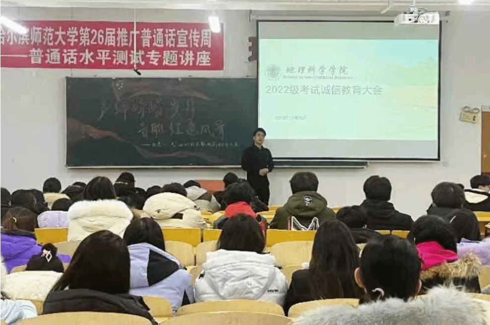 近日,地理科学学院各年级召开了诚信考试教育大会,辅导员老师主持会议,全体学生参会。辅导员为学生讲解诚信考试的重要意义并告诫违纪行为的严重后果及处理办法,引导学生在考试中坚守诚信第一的原则,树立积极正确的考试观,明确考试的根本目的,以成绩检验学习效果,从而查缺补漏、温故而知新,切实提升自己的专业水平。“纵有考试分秋色,需从诚信见英雄。”考试凭实力是自信者的姿态,考试靠作弊则是怯懦者的失败,人无信不立,作为新时代的青年学子,必须要坚持“文明考风、诚信考试”,自觉抵制作弊行为,交出一份“德才兼备”的合格答卷。